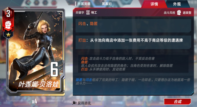首先肯定有小伙伴好奇,咱这个卡组也不改造,带这么多并肩干嘛?首先并肩本身就是一张无损赚钱的卡,其次他和叶莲娜的互动可以做到定向检索,叶莲娜这张卡是我们这卡组前期核心中的核心,是我们胡牌的资本,也是为什么同样是飞刀卡组情报稳定性远远高于潘妮,惊队的原因。三本看到叶莲娜必锁,锁了四回合直接跳五打出,我们将会有1/2的概率在四回合直接拿到飞刀(遭遇牌只有飞刀和狙)。倘若你4回合拿到了飞刀,那么就可以开始入人了。如果你三本商店里锁了叶莲娜加并肩,那么你可以打出两次,有75%的概率可以在4回合拿到飞刀。