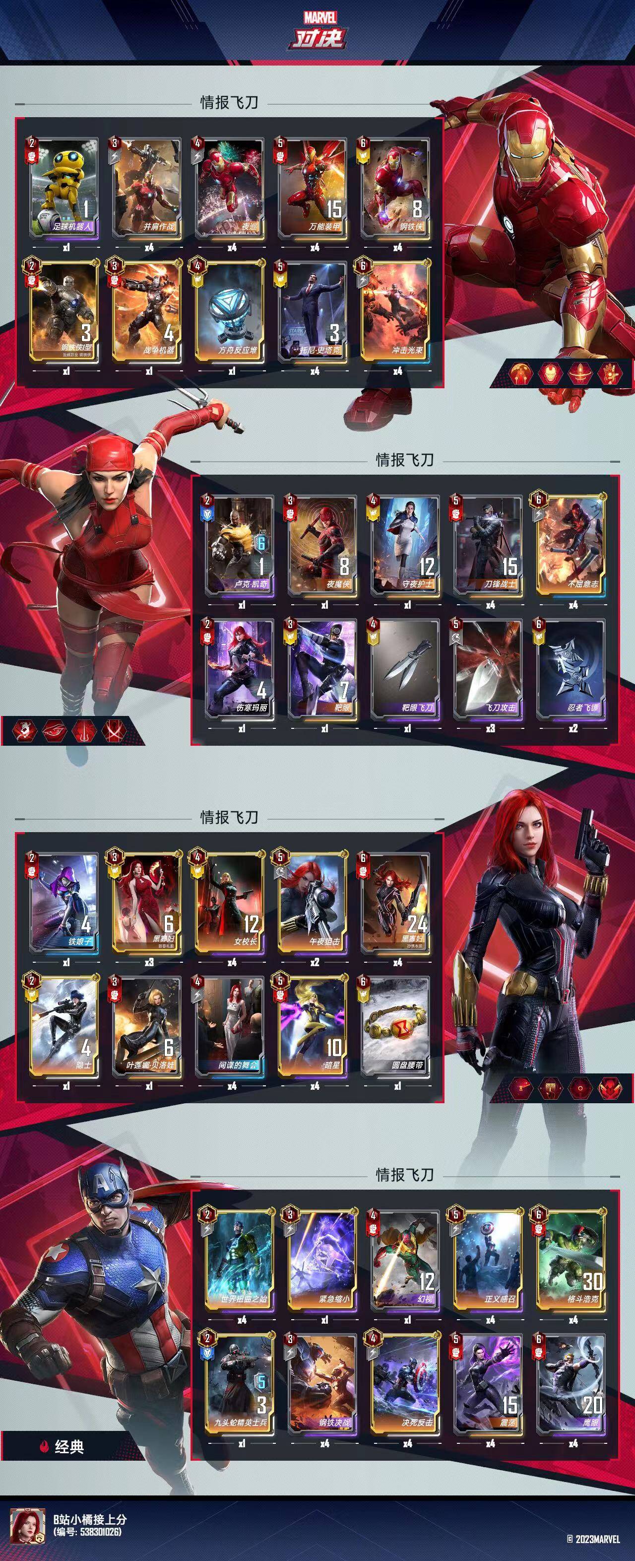 首先3本前的卡整体思路就是怎么跳本舒服怎么带,怎么经济最多怎么带,例如钢铁侠1型,足球机器人,战争机器,九头蛇士兵,伤寒玛丽,只需1块钱8场攻的瞎子,寡妇二费两个4攻怪(不需要穿甲武器,有扭不缺武器)。接下来讲一下重点卡: