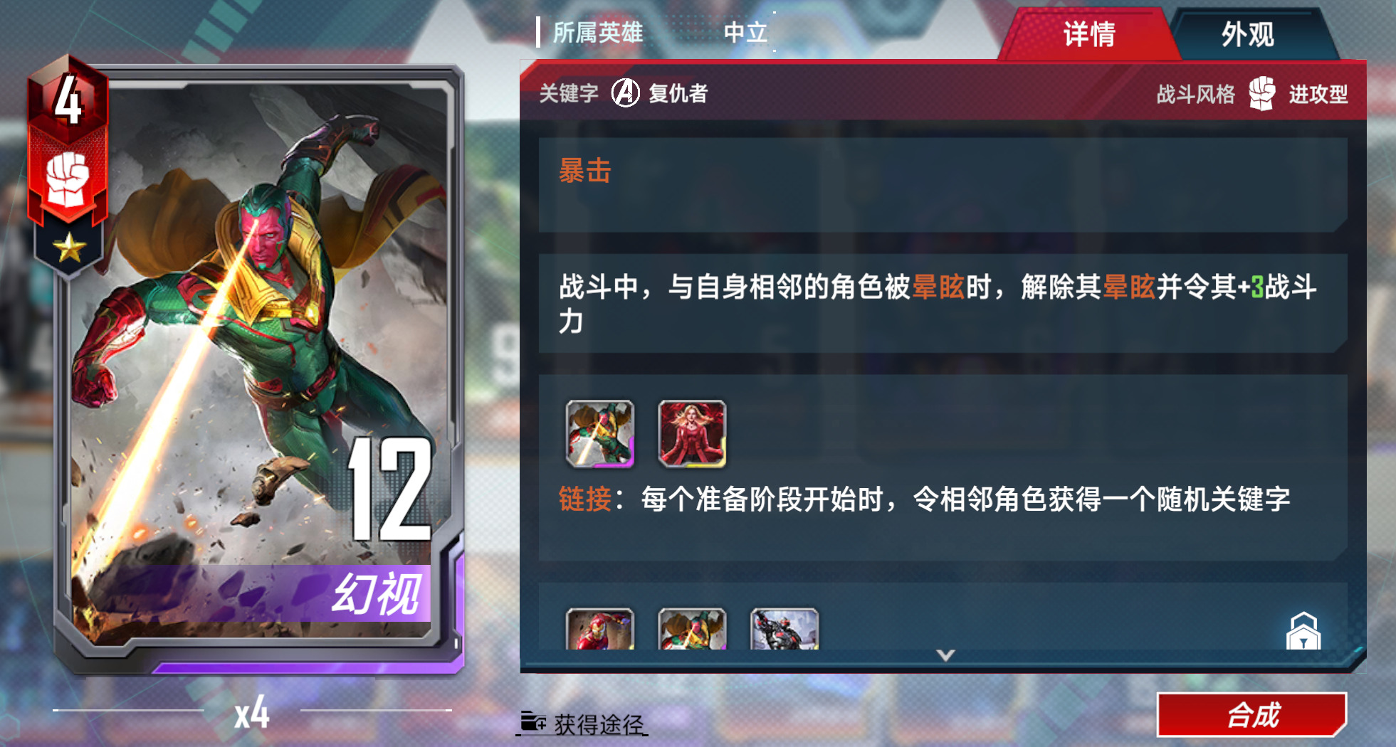 幻视用以打带蜘蛛侠的卡组如潘妮/瑟曦等,可以大大增加获胜几率,一张即可,有能力的话记得给他带个高攻击武器