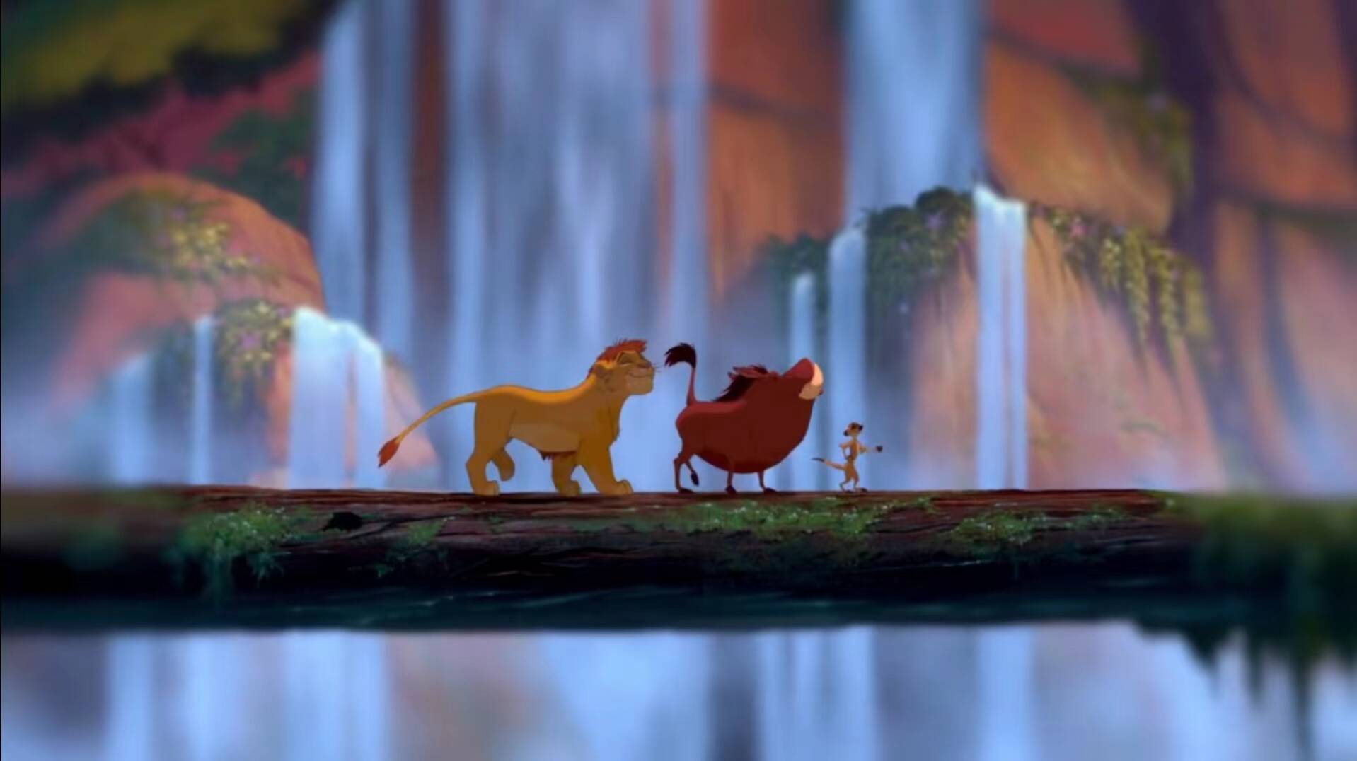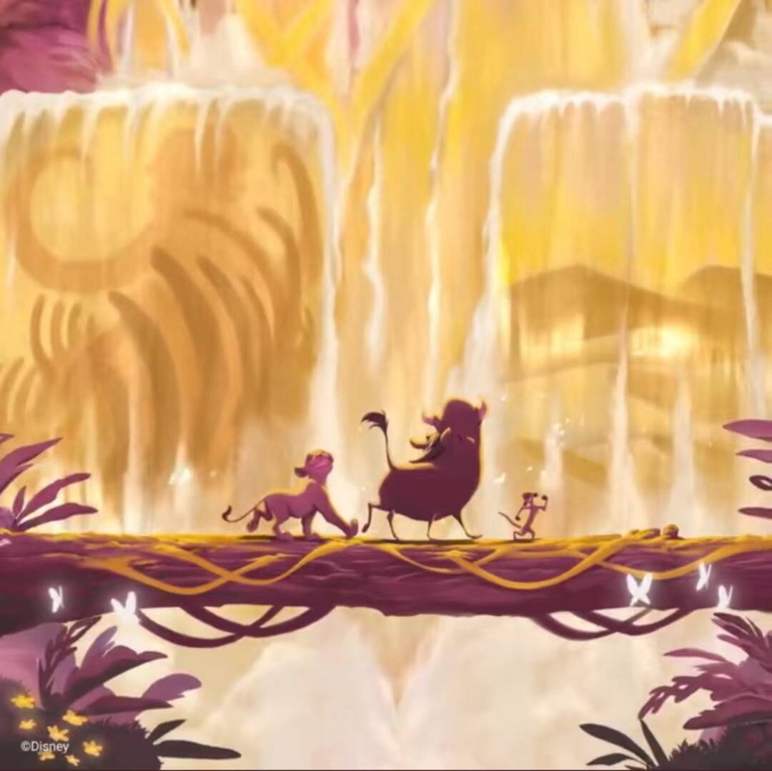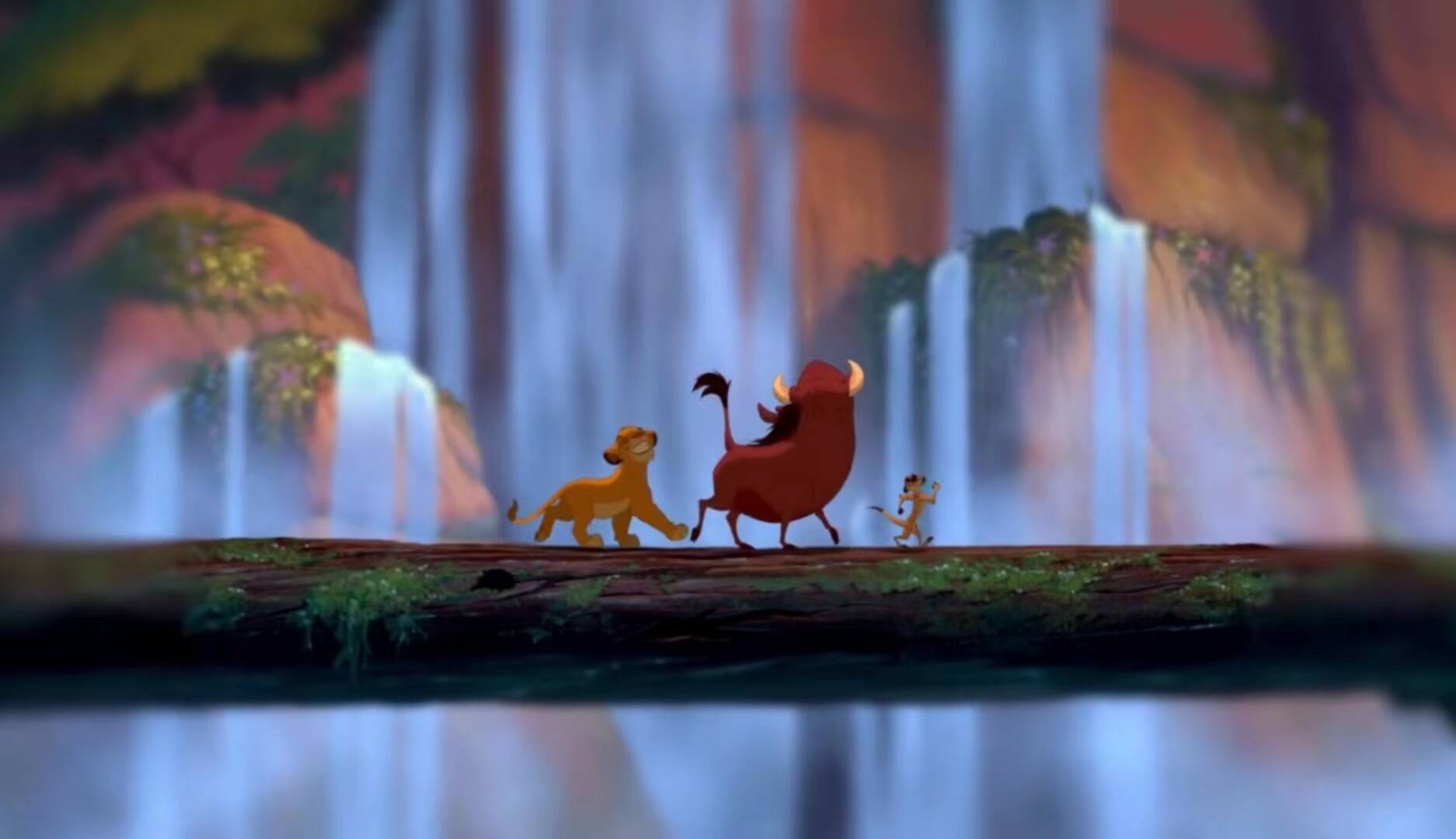 画面出自1994年的迪士尼动画电影《狮子王》中,落难的辛巴在庞猪彭彭和狐蒙丁满的照顾下长大的片段。对应的歌曲是《Hakuna Matata》(意为不用担心,按照自己的意愿无忧无虑的生活)。