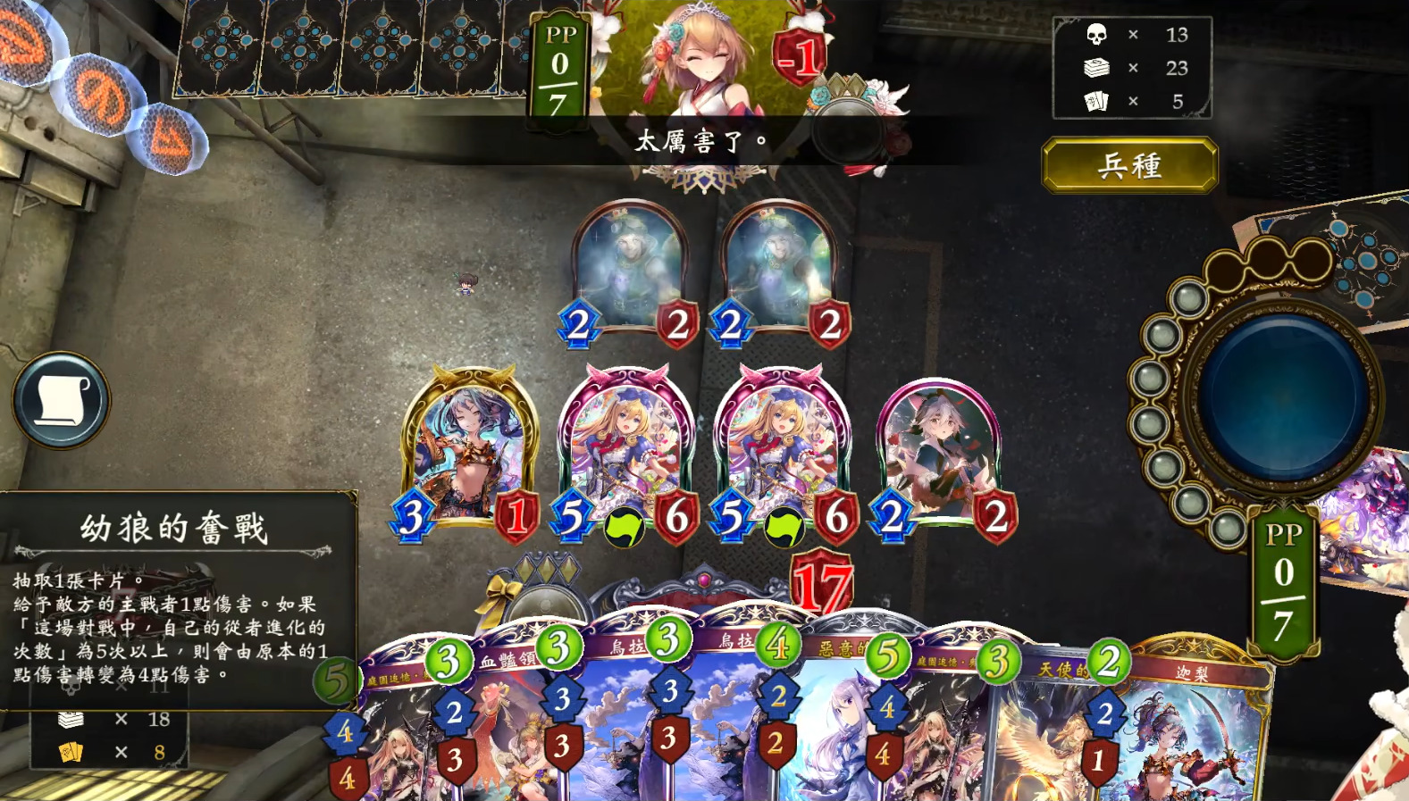 优先将手动进化机会留给涸绝饥饿·吉鲁涅莉婕、一剑、恶意的剑士、庭园追忆·奥莉薇与希尔薇娅,以及后手第4回合的梅丹佐。特定情况下可以进化其他随从,例如5次进化时进化夕月,刷到7。