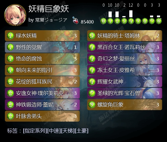 在DLC刚更新的时候,妖精妖曾一度流行,在社区中出现了许多连胜分享。时过境迁,由于被狂乱鬼等天敌压制,妖精妖如今已经比较少见,如果依然想玩的话,建议投入螺旋角巨象以博取更高上限。