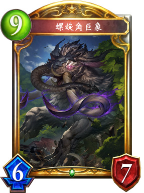 螺旋角巨象也是进化体系的受益者。它能被野性的觉醒检索,并在各种刷进化手段的支持下高效减费,可以在第7回合甚至更早出场,打出高直伤。巨象还有机会在第8回合作为0费随从登场,配合疾驰随从、另一张巨象等抢血手段打高爆发甚至OTK。