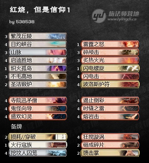 红白烧,无需多言,就是加入了波洛斯护符、闪电螺旋的红烧套牌。