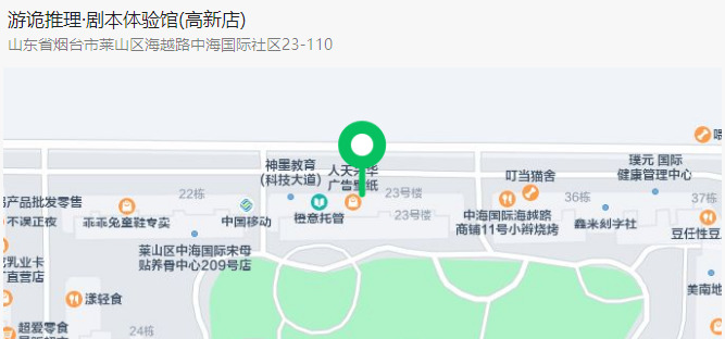 地址:山东省烟台市莱山区海越路11号中海国际社区23号楼商业110号