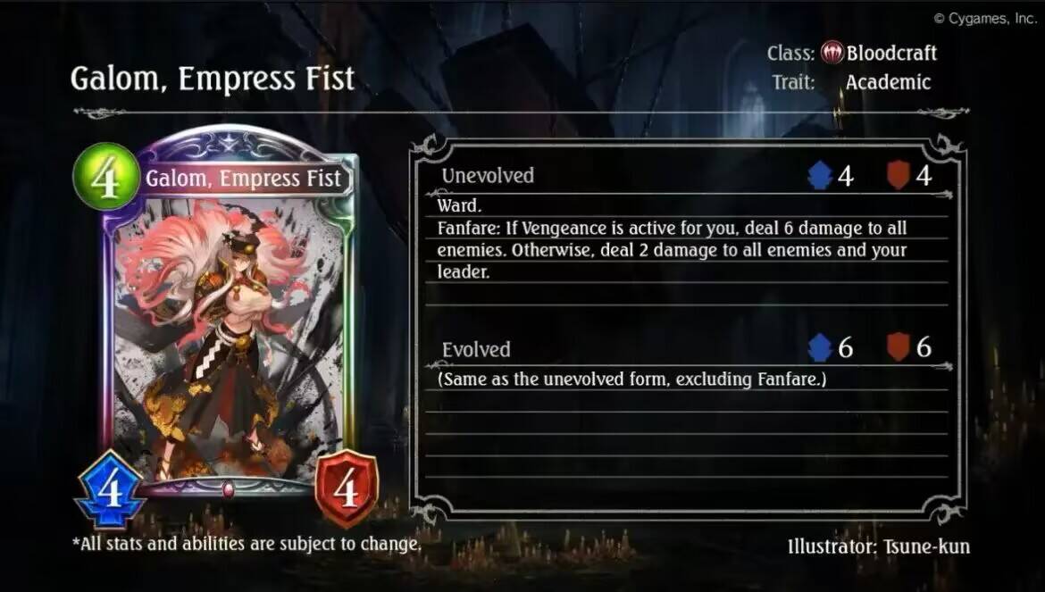 入场曲 如果复仇状态已发动,则会给予所有对方的随从和对方的主战者6点伤害。如果未发动,则会给予所有对方的随从和双方的主战者2点伤害。
