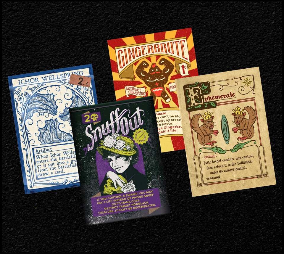 自从威世智在《秘室珍品》推出越来越多风格的牌张设计之后,玩家社区对自己动手设计新奇样式的热情越来越高涨。我在这里收录了一些设计上足以以假乱真的优秀Reddite作品。它们都是饭制,不是官方产品!