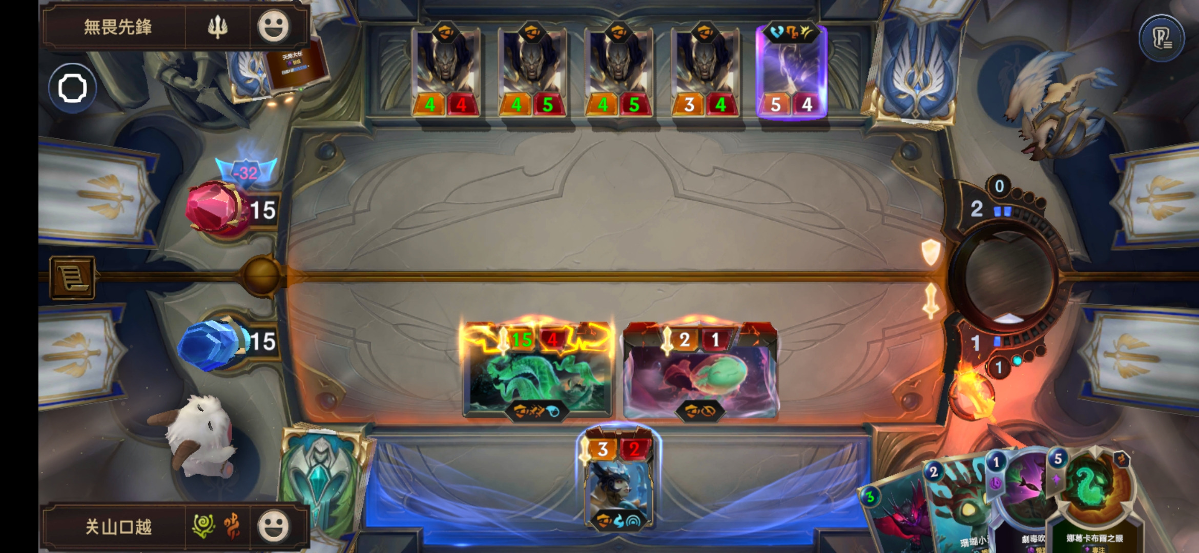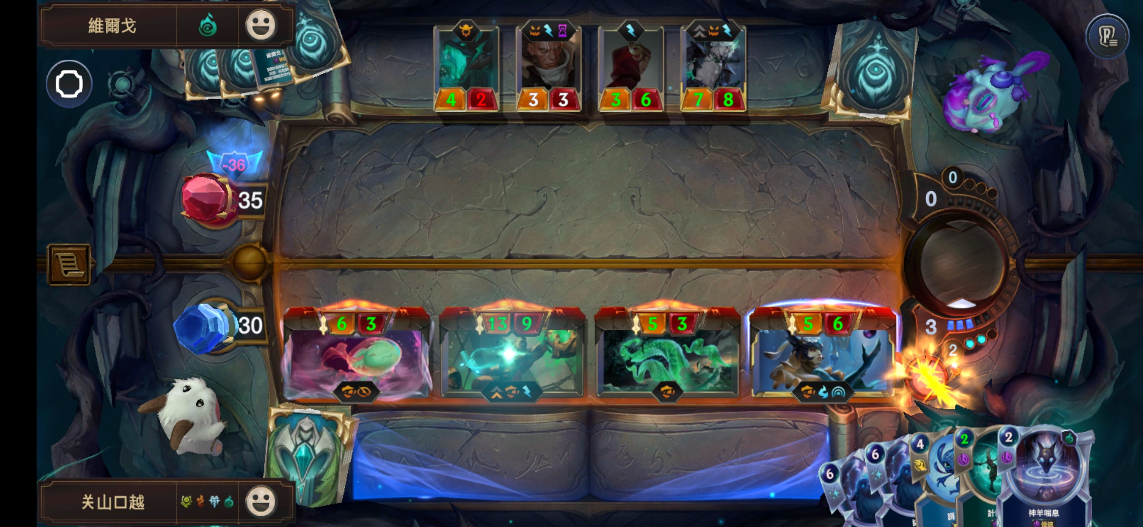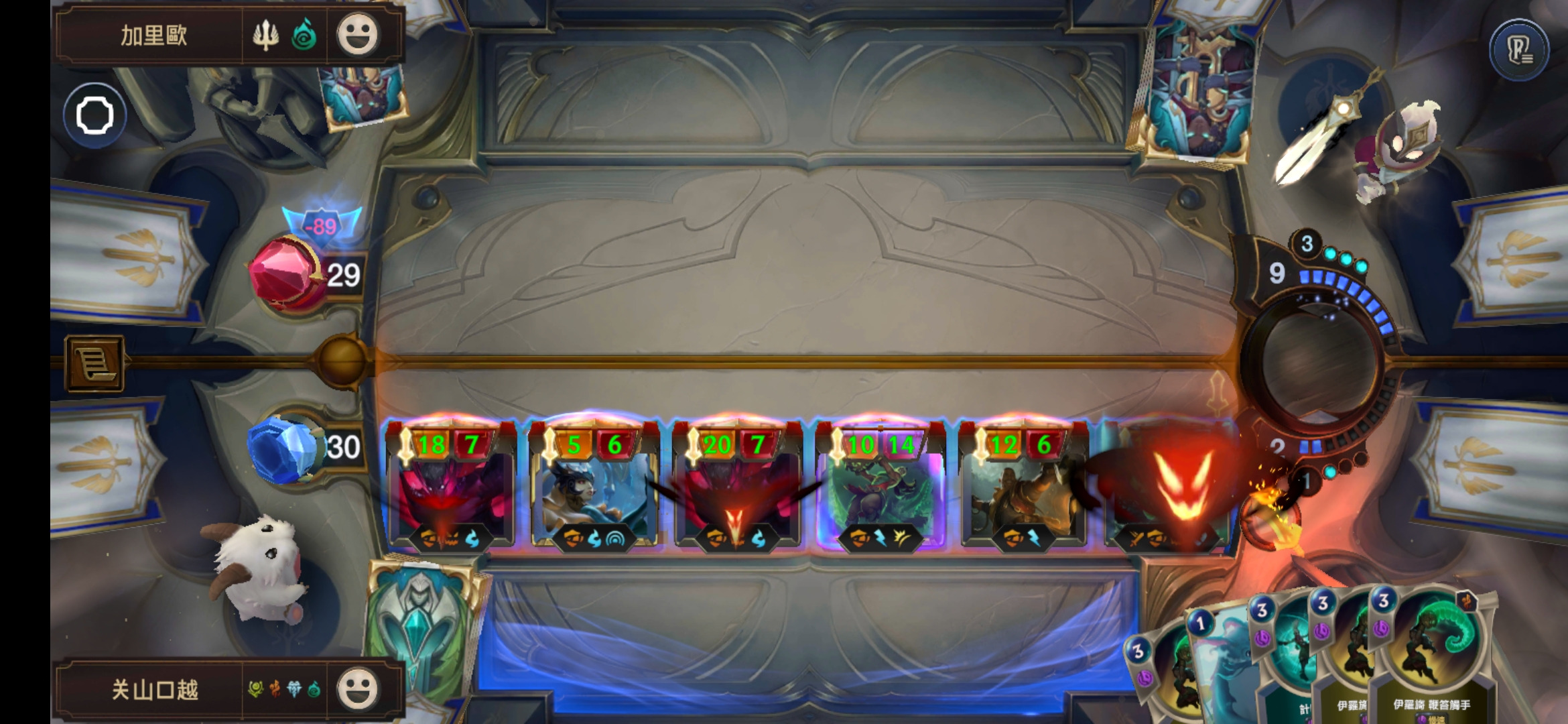 佐伊关(忘截图了)用俄洛伊法术或者娜美法术解佐伊后俄洛伊冲死。佛爷关老办法,不要怕交换,只要娜美站住,就能加攻冲死。这边直接鱼人法术配合娜美加攻,俄洛伊冲死。
