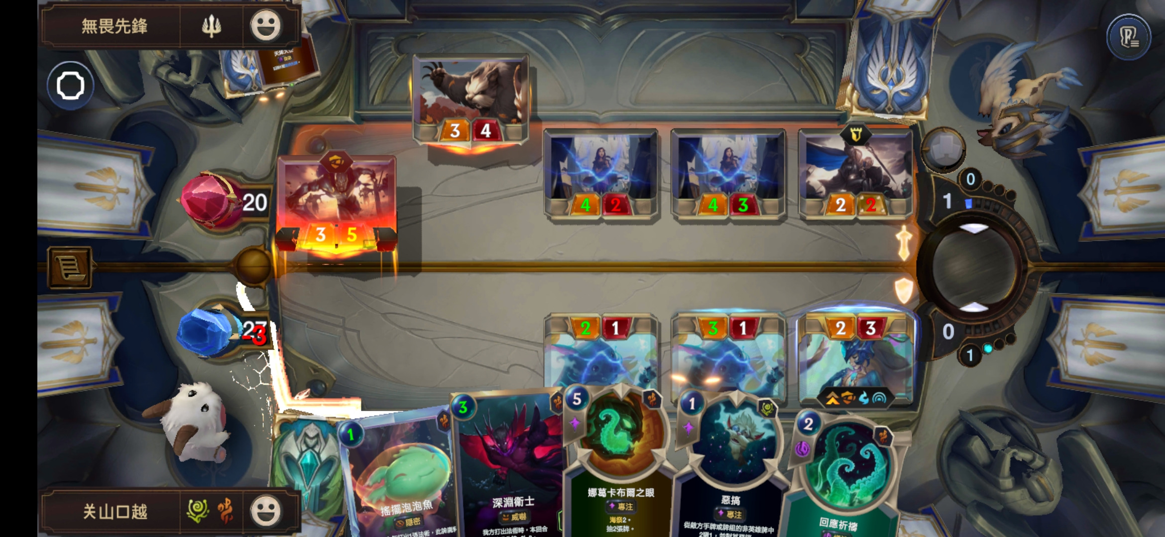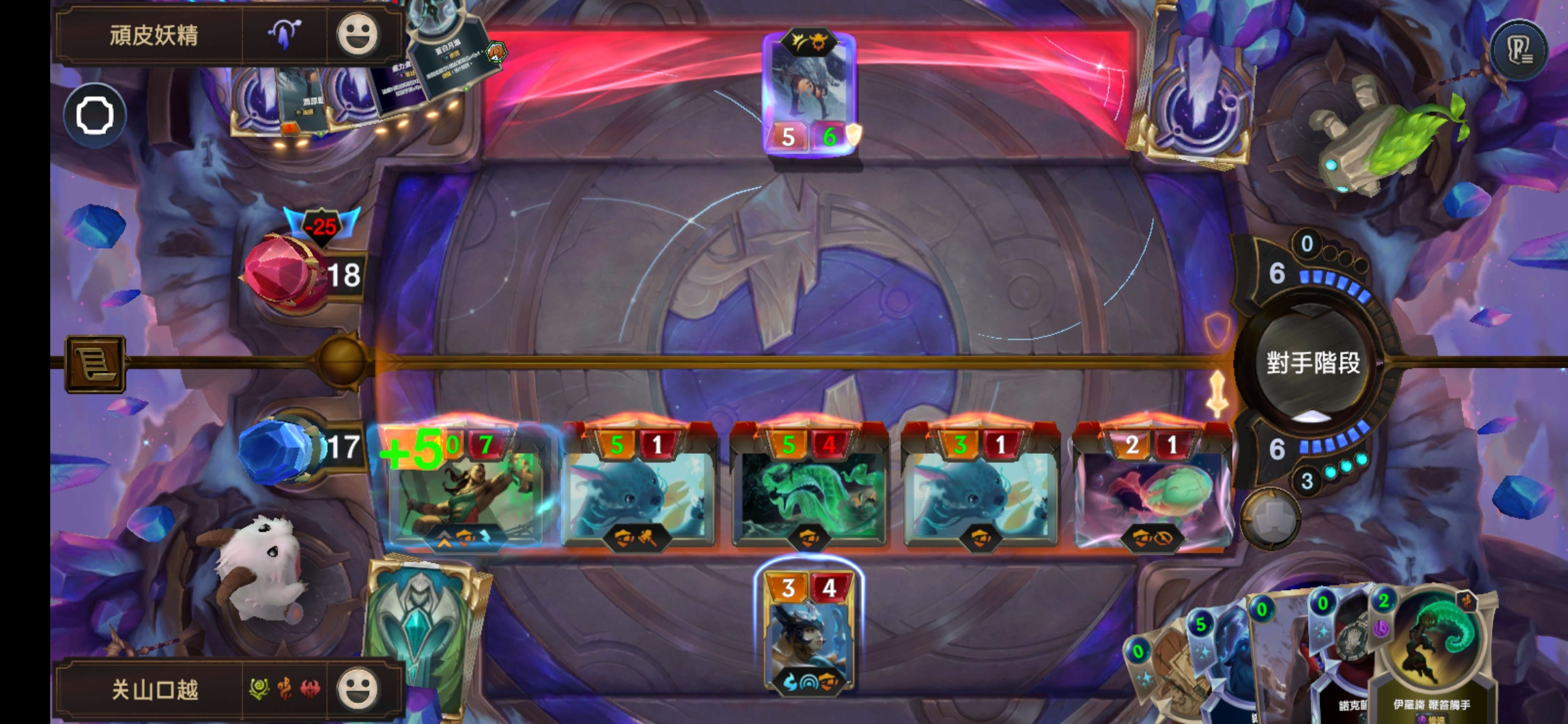 过关后选择俄洛伊。对娜美来说加里奥关的陷阱关一是蒂亚娜冕卫,精锐单位身材太结实了,不好交换,一个不注意88碾压和滑步备战就把人打死了,另一个是巨神峰之巅,我们的卡牌都是低费衍生物,吃不到减费收益,对面容易直接几个0费大哥把人压死。这次选择走顽皮精灵,隐秘单位和小生物加攻交换,最后俄洛伊直接拿下。