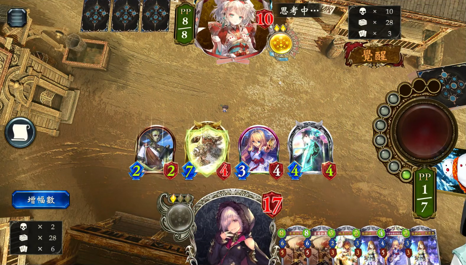 前期争夺场面。手中没有不可思议的探求者·爱丽丝,或对手一定或大概率能解场的话,优先使用甜点巫师。手握不可思议的探求者·爱丽丝且预计对手不易解场的话,优先使用中立随从。