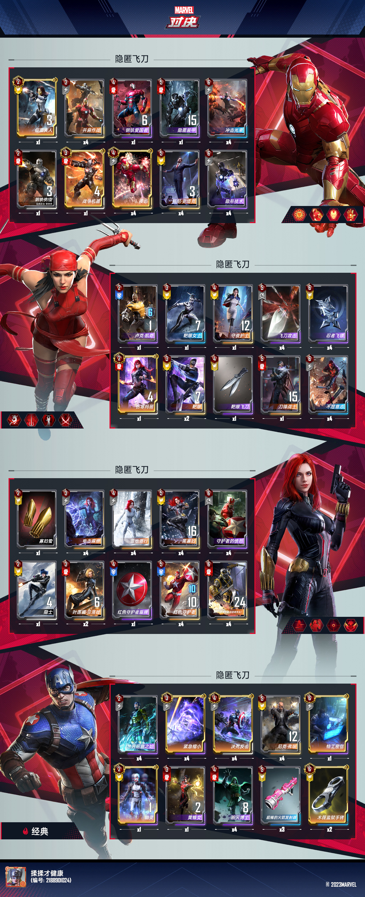 常规带法:并肩,托尼,夜巡,隐形。6费也可放入钢铁侠。