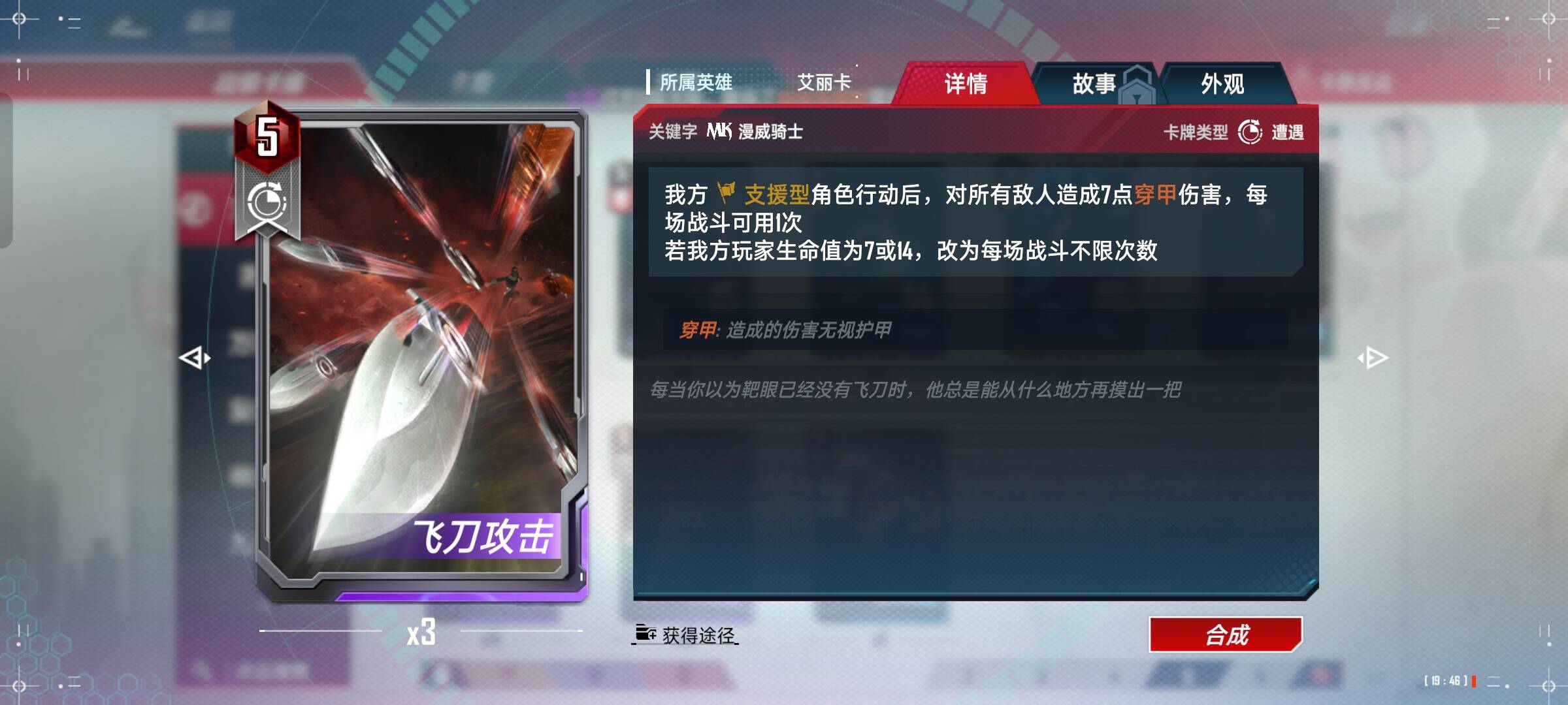 1,4回合速5本,有叶莲娜则必检索飞刀。有扭曲也可考虑开扭。