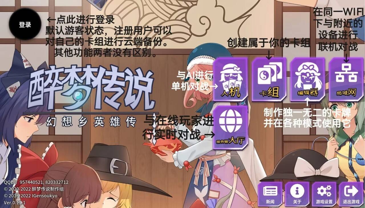 游戏目前提供【人机】、【卡组】、【编辑器】、【局域网】、【服务器大厅】5个功能。
