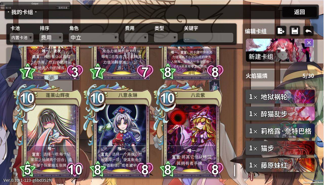 我选择了火焰猫燐。同时,组卡界面右侧顶端按钮将会发生细微的变化,如下图: