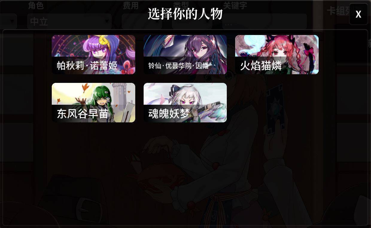 当你点击【新建卡组】后,选择一个人物,定下卡组的风格基调: