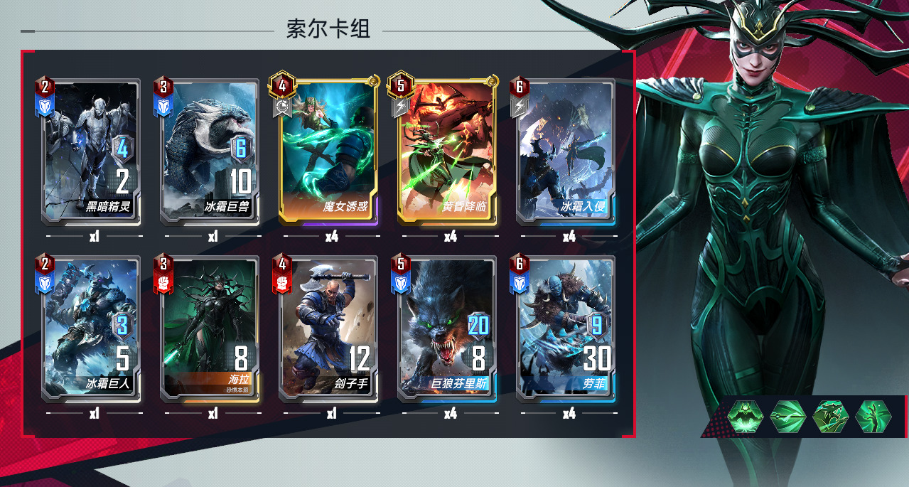 反浩克装甲4:可以夜巡秘闻场上已有的反浩克,要是连续打多个回合可以卖掉上回合被封印的随从再买个新的来夜巡或者干脆2+1夜巡,反浩克冲击事件因为摧毁对手随从是持续时间卡效果所以如果不是抡斧子或打响指都不会触发,再说还有四张魔女。