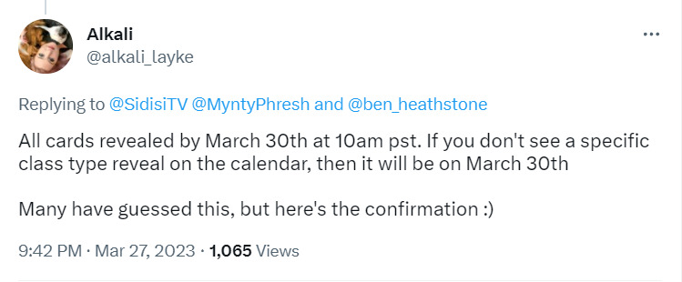 另外注意Alkali的原话里还提到“所有卡牌将在【北京时间】3月31日1点前发布”,说明这次安排可能有所不同。比如发布会视频不仅提前预录,而且官网卡查或许会在发布会开始时就把剩余新卡更新完,之类的。