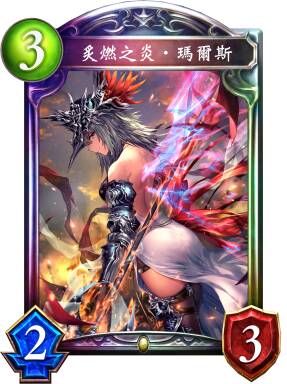 中期尽快进化玛尔斯。在多数对局中,应当追求在场上放下2张炎将的双枪。但如果担心对手采取卡场策略,可以放弃进化第2张。在竞速战中,如果能叫杀,也应优先选择进化第2张玛尔斯以外的打法。