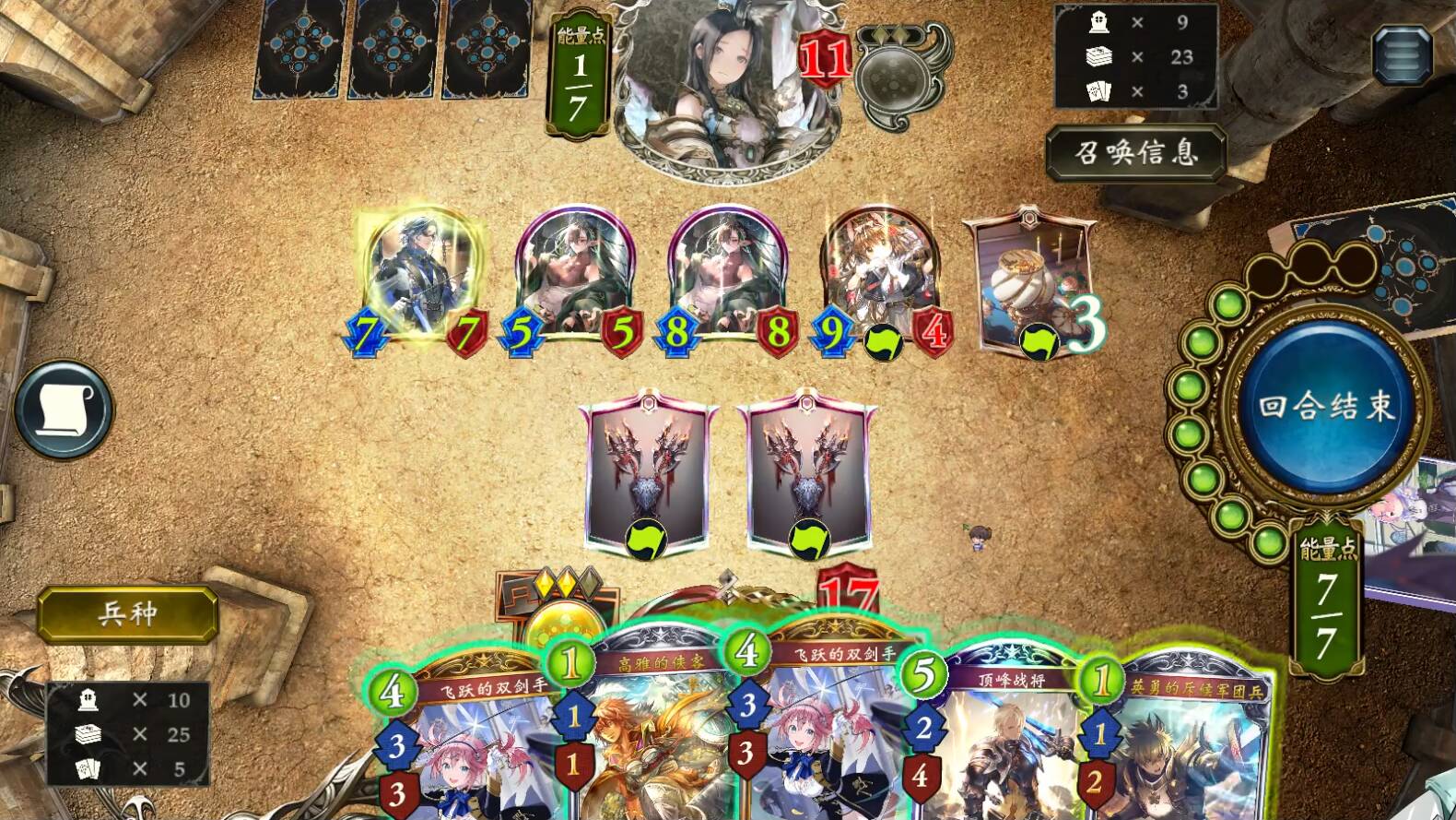 -有玛尔斯,或先手有托尼/顶峰的话,留边境的见习骑士,留战斗女仆+火炎战士的组合。