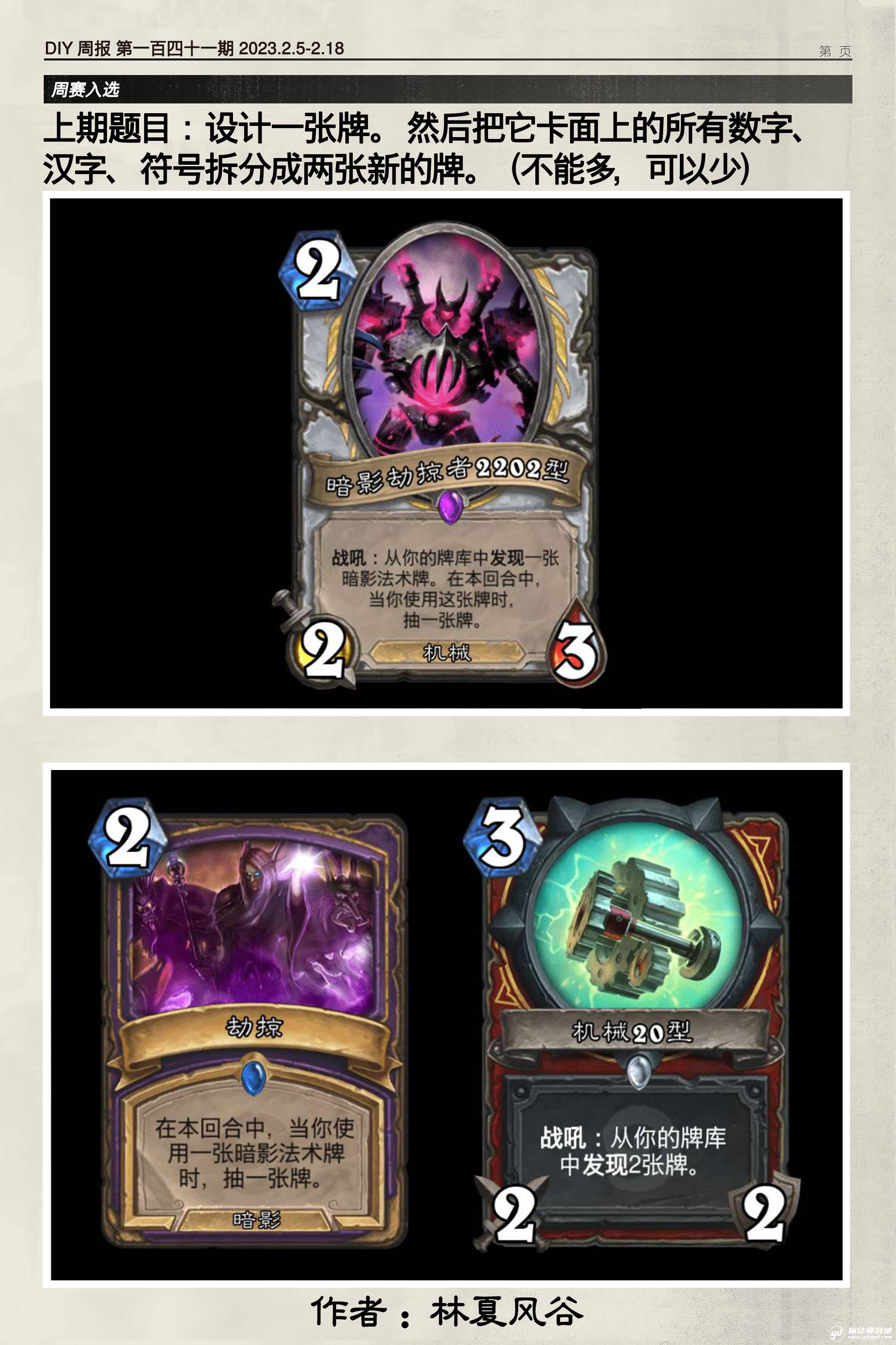 三合一题目:一道游戏性题,一道契合题,以及一道和另外两题放在一起基本不太可能被选的题。对于此类题目,我的建议是,最优先考虑一卡合多题,然后再考虑亮眼的契合,写不出亮眼的契合再考虑游戏性。一卡合多题无需解释;契合先于游戏性的主要原因是契合题的发挥空间比较大,更容易找到其他人没想到的破题口;而游戏性题当然是最简单的保底手段。