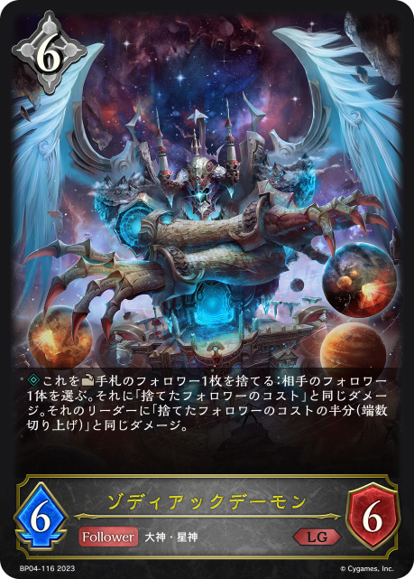 启动 横置这张牌 舍弃自己手牌中的1张随从:选择1个对方的随从。对那个随从造成等于“所舍弃的随从的消耗”的伤害。对那个随从的主战者造成等于“所舍弃的随从的消耗的一半(向上取整)”的伤害。
