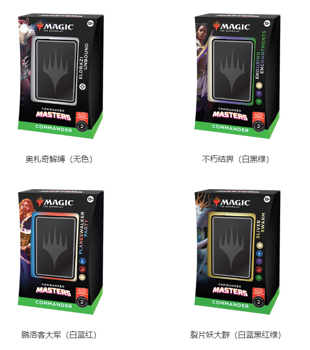作为大师系列,指挥官大师由重印牌和强大的新牌张组成。这次有四副预构组套牌,每副各内含十张新的万智牌牌张,其中包括全新的指挥官,此外还有系列补充包、轮抽补充包和聚珍补充包。完善您的收藏,与您的游戏群组进行友谊赛,或两者兼顾!它很适合各种牌手。
