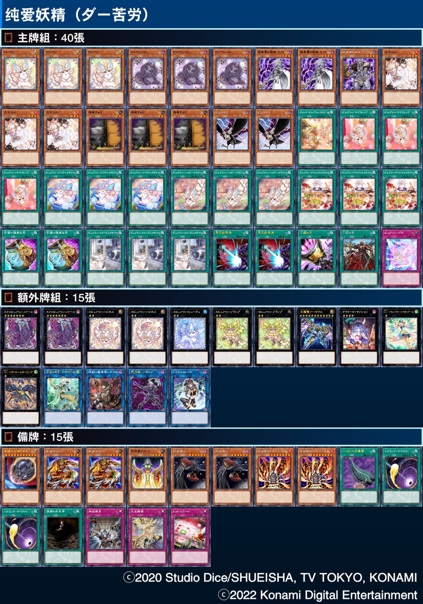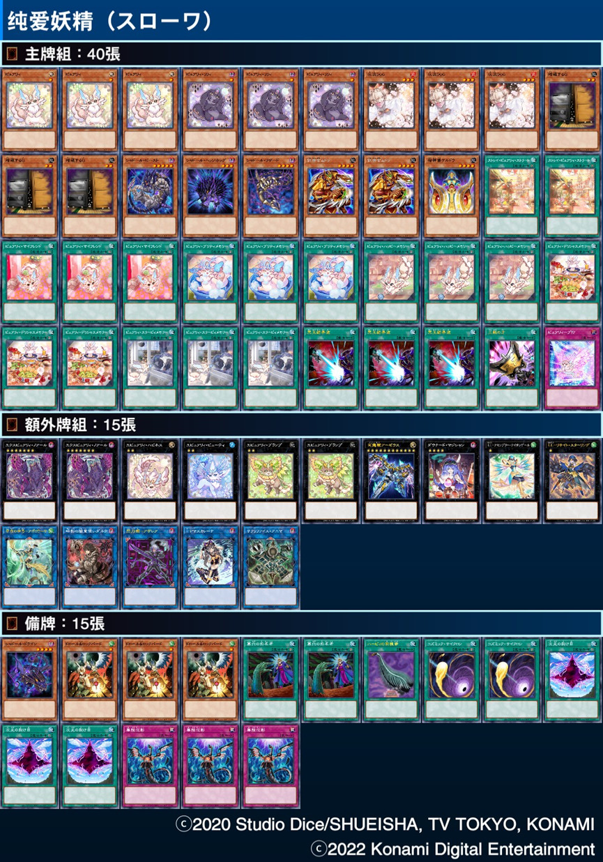 “スローワ”在29人参赛的“ぺこCS”中使用纯爱妖精获得亚军。在丢弃用的牌方面,他的选择是“影依兽”“影依蜥蜴”“影依刺猬”。他在主牌还投入了“剑神官 姆多拉”“宿神像 凯尔多”3张,主要针对珠泪对局。