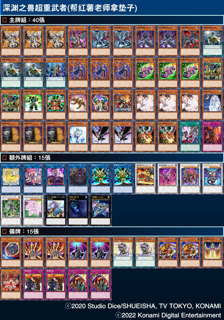 “帮红薯老师拿垫子”在340人参赛的“游戏王巡回赛OCG天津站”中使用超重武者深渊之兽同调获得四强。