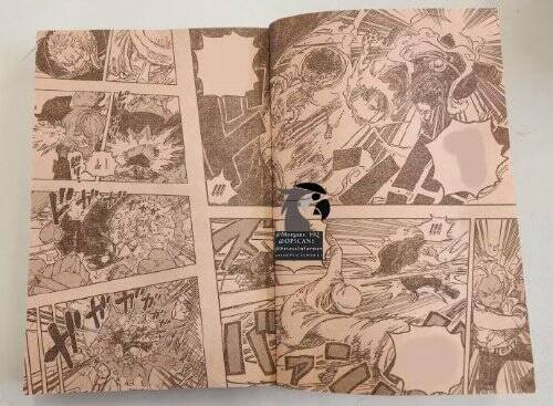 在一个精彩的跨页中,路飞与路奇,索隆与卡库,一起使用组合技攻击S-熊和S-鹰。