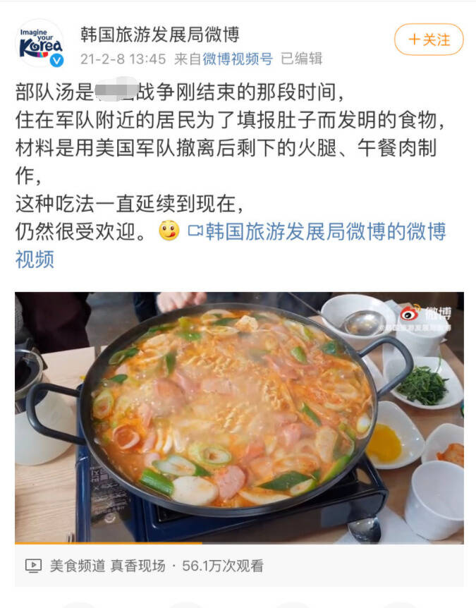 近日,所谓的韩国美食“部队锅”再次成为网民讨论的焦点。