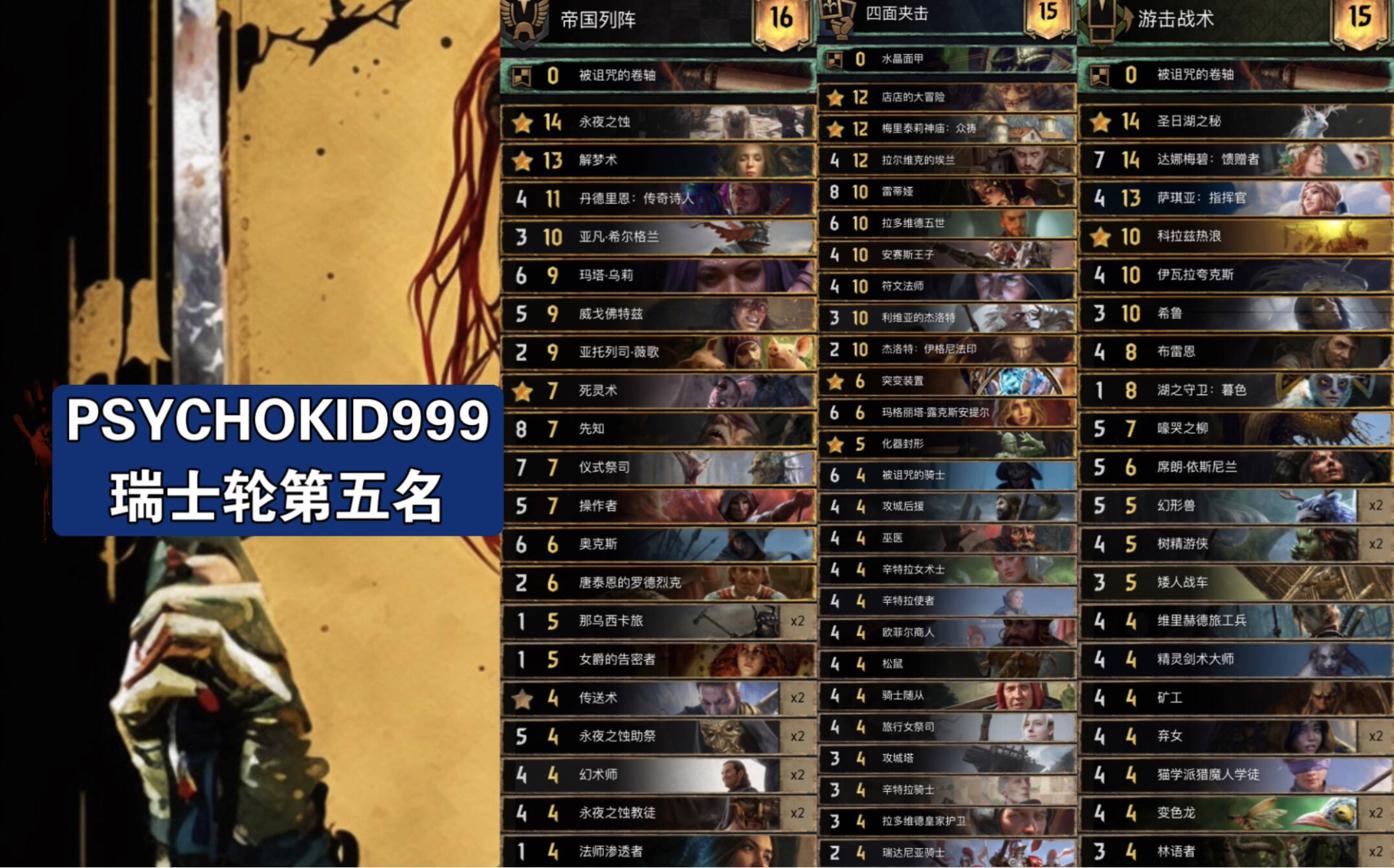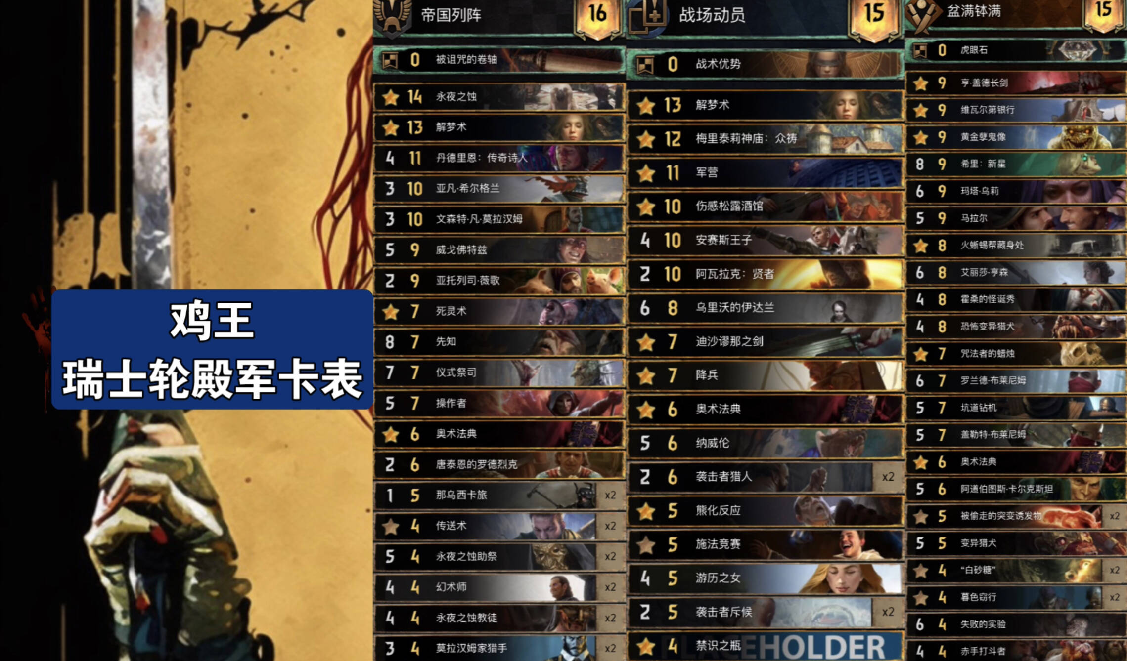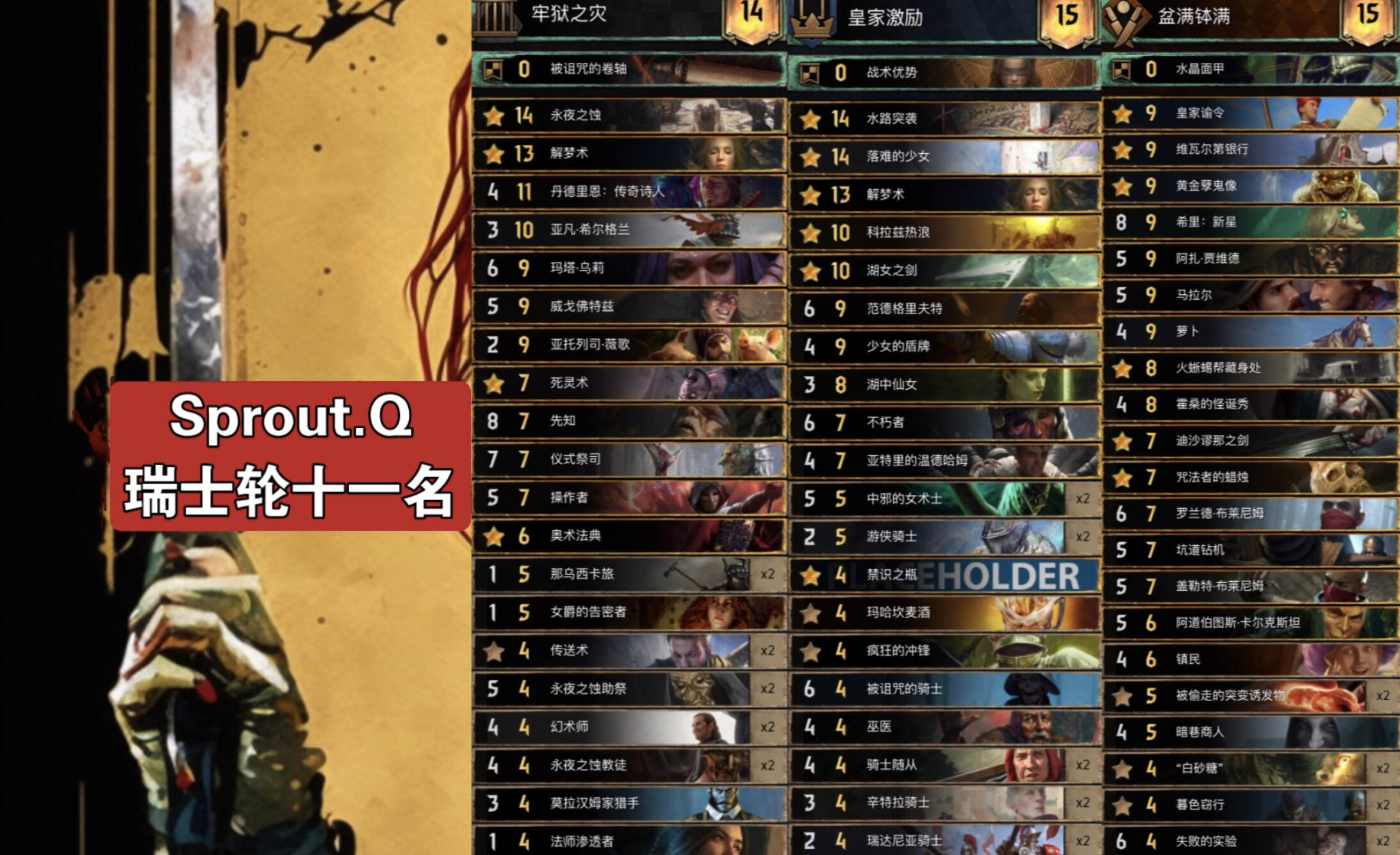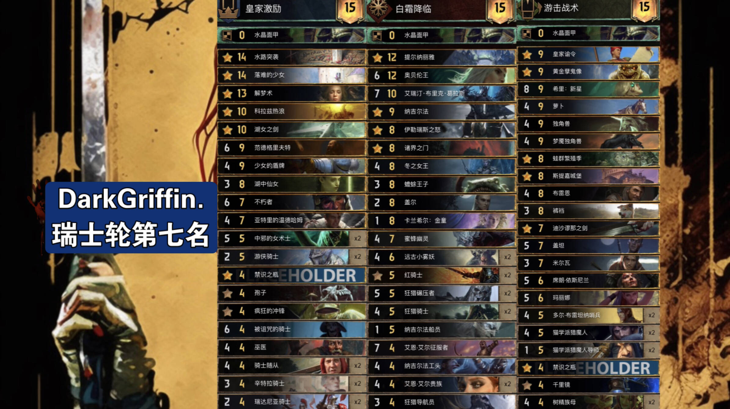 本期卡表链接可看:https://tournaments.playgwent.com/tournament/1db437134e847372460fa12f70685f83/participants