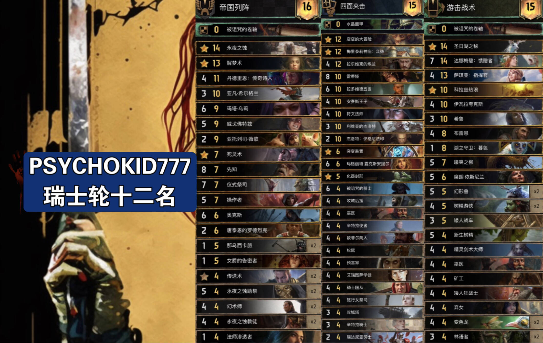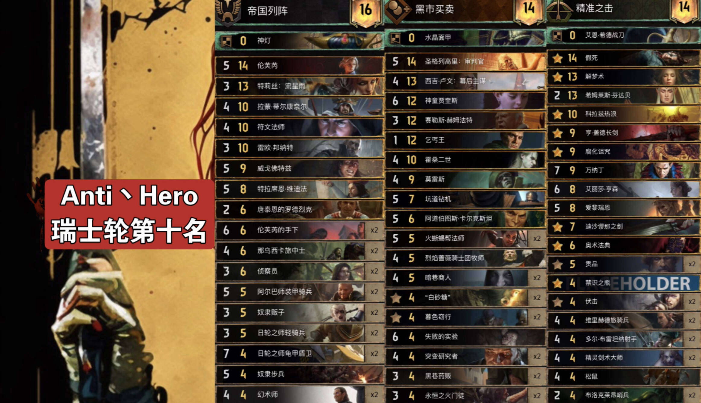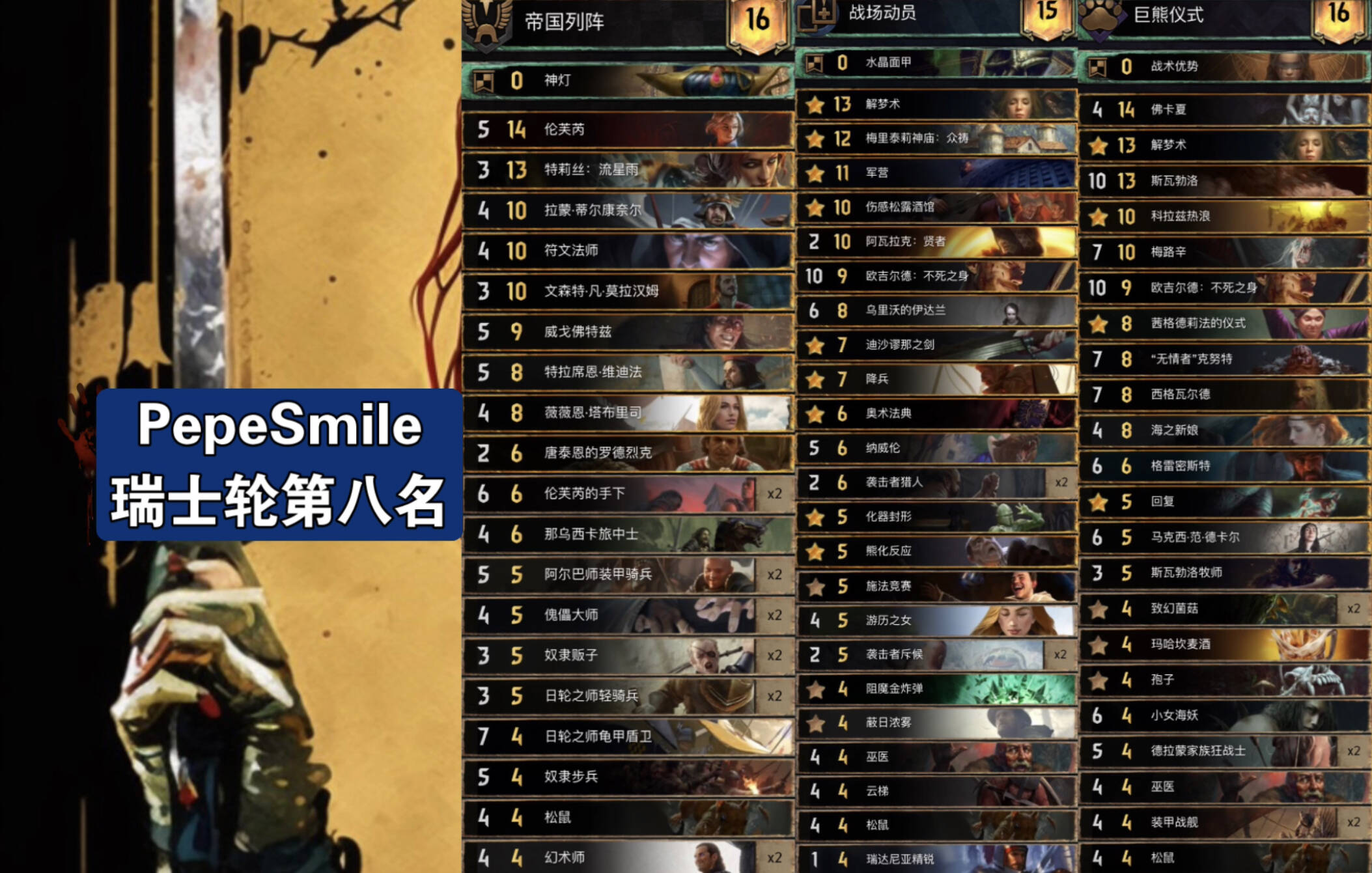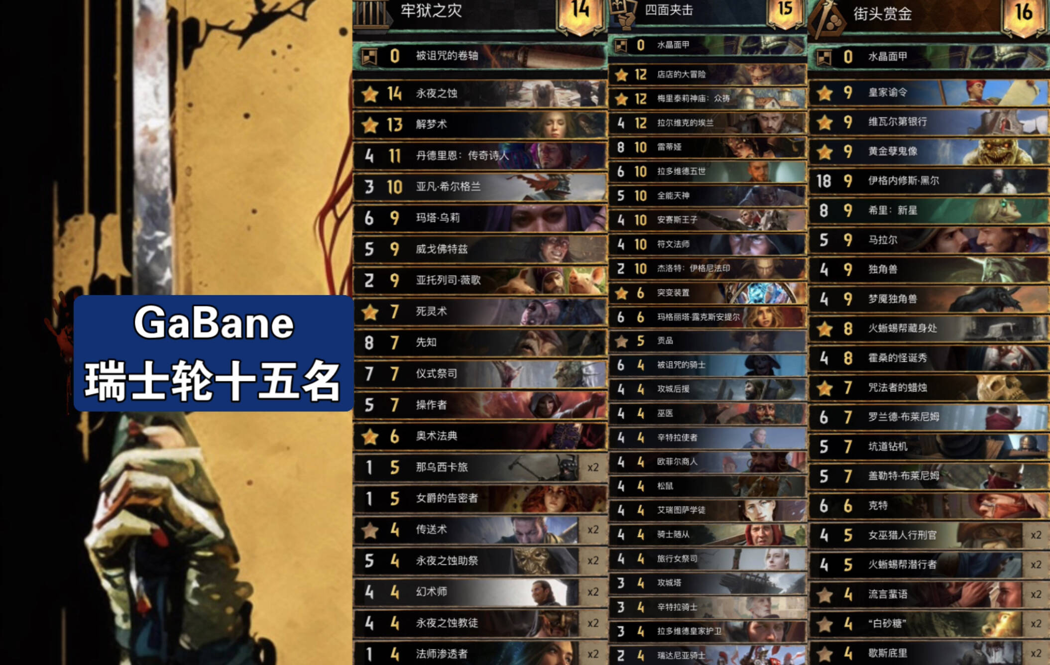 本期卡表链接可看:https://tournaments.playgwent.com/tournament/1db437134e847372460fa12f70685f83/participants