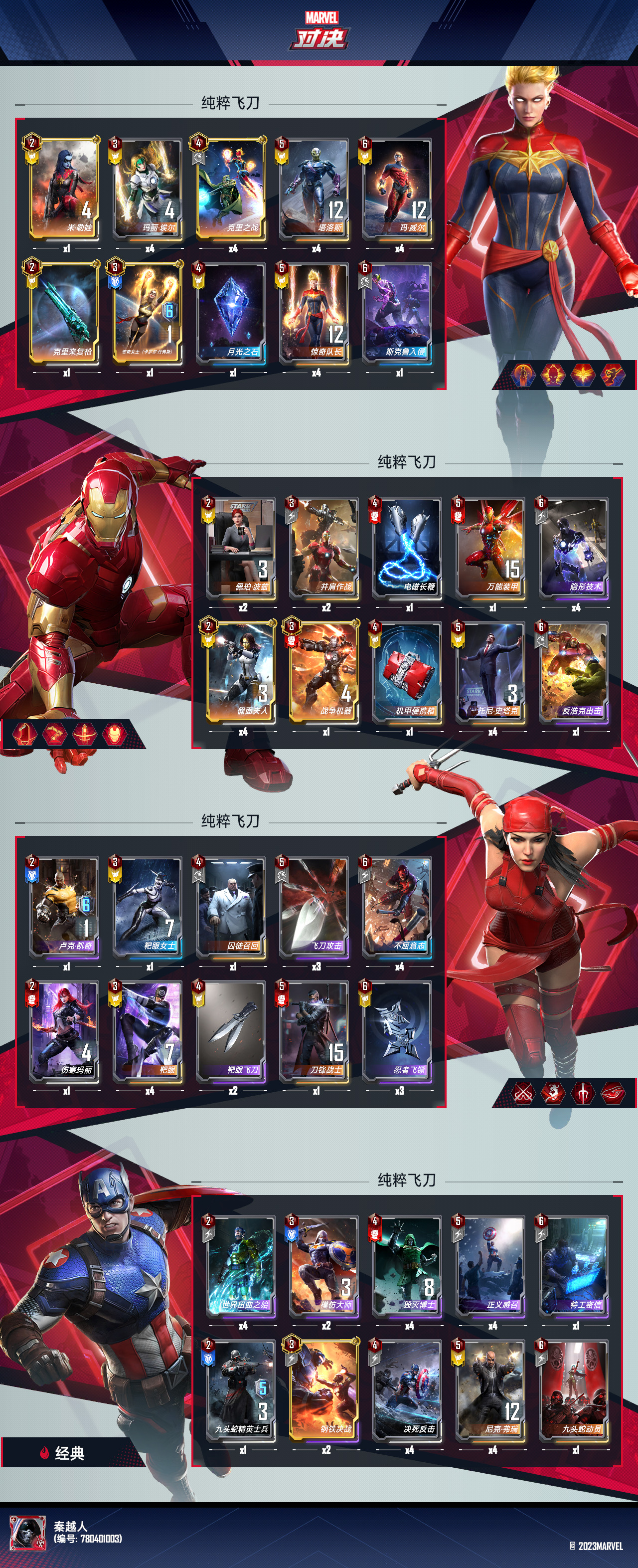 1、秘闻(奇异博士/钢铁侠/艾丽卡):飞刀有两张就及时上本找飞镖,留一张给剩下不会飞走的,其他的给靠前的惊队,思路正确的话,10回合前我们打秘闻都是大优势,然后会被能量波波死突然打不过(这就是为什么我们要拉满马速)