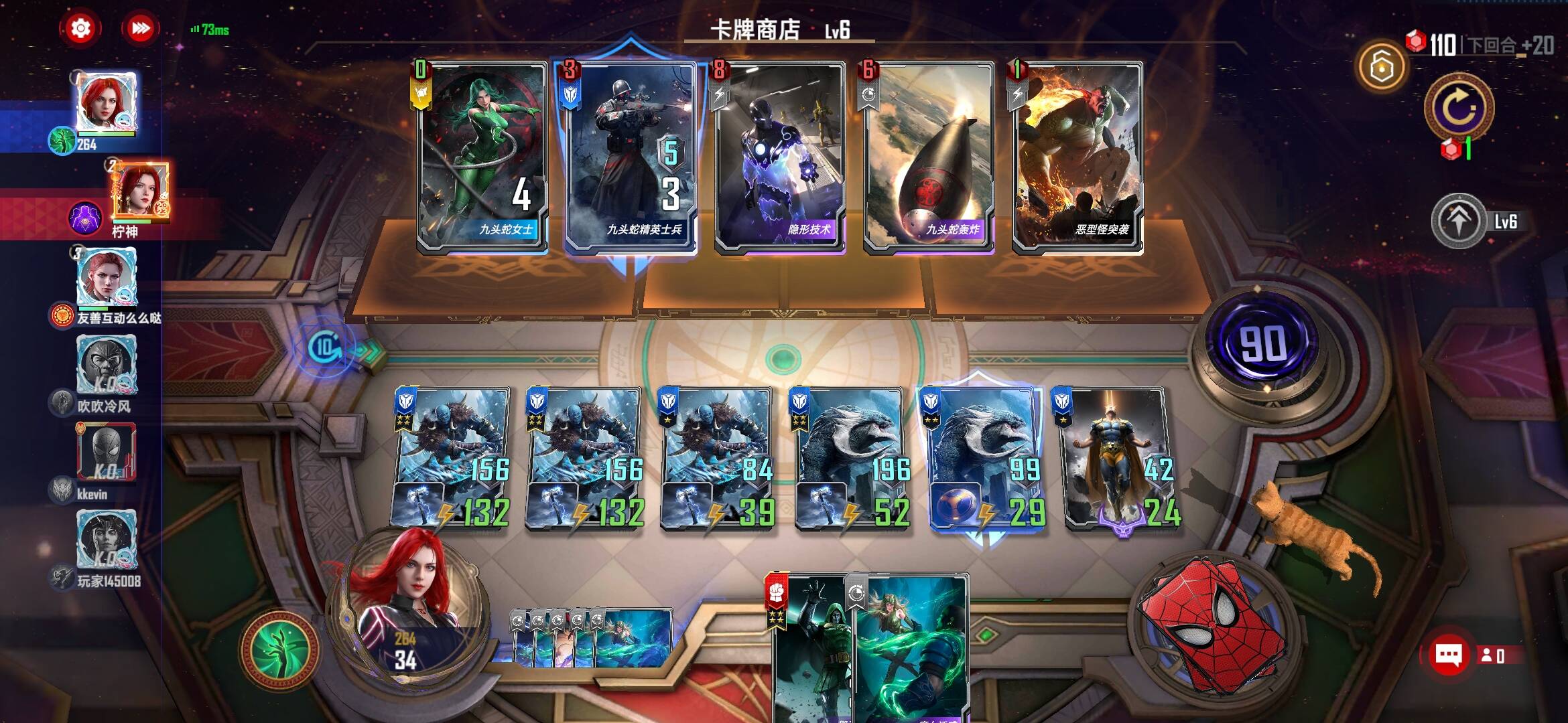 小辣椒4:九头蛇卡组有很多打出的随从:小黄人给钢铁侠八张黄卡减费(可能捎带手恰好给锁定黄卡减费赚钱),锁定卡四张模仿大师和自带一张黄蜂女这两种附带打出刷新商店的约等于免费卡,以及四张并肩作战刷新模仿大师和黄蜂女,所以可以说如果不是某个回合恰好使用打出过多,小辣椒基本上不会触发不了,赚来的费用不仅可以填补自身购买费用,在三本刷新购买索尔终幕,还可以给跳六本提供费用。