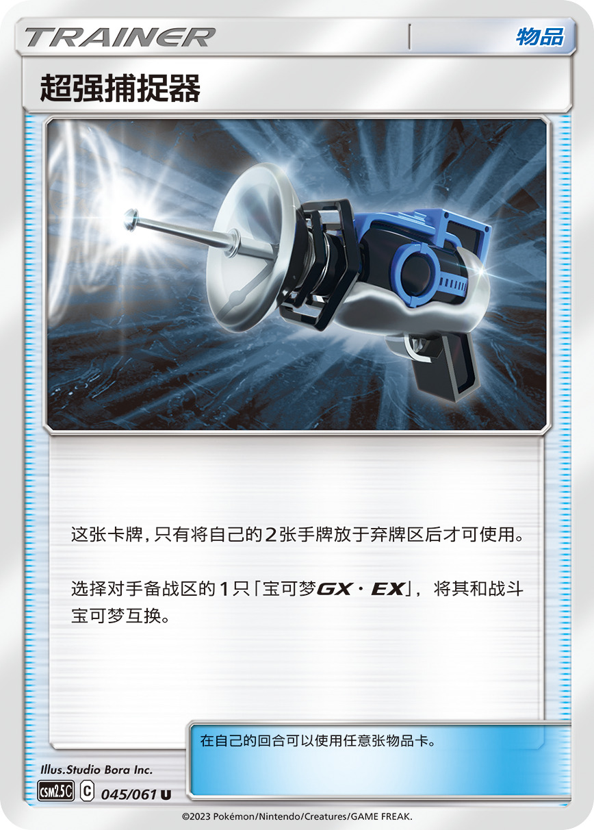 综合来说,超强捕 捉 器是一张极其超模的单卡,会让一个回合中能做到的事情巨幅提升,打出对手难以预料的bigturn。此卡依旧与上述两张卡存在同样的问题,即宝可梦GX往宝可梦V转变以后,此卡将不再能抓宝可梦V,强度随着版本更替而逐渐下降。但当前版本就是这几张卡的最强势版本,相信广州大师赛上述几张卡将会大放异彩。