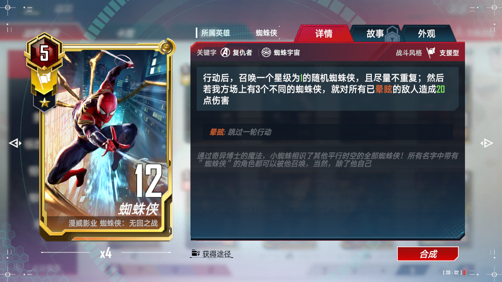 4.极怕大范围的aoe和狂战斧效果的牌(夜魔侠、红博士),减员后的卡基本就没有效果了,而且小蜘蛛和2099也很怕大范围aoe,基本就右上角ESC点投降了。
