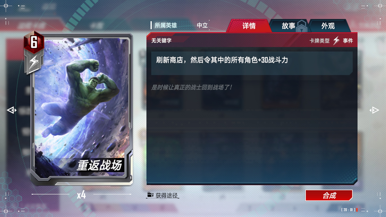 四回合:一般选择四块钱技能并上本,有扭有锁血我甚至会选择卖一轮,下回合开扭;否则就上本一刷,全款拿下最强战力卡(豪气),最强战力指的是:荷兰弟 奥创 刀锋 有2099的迈尔斯,或有神盾局通讯器的迈尔斯。