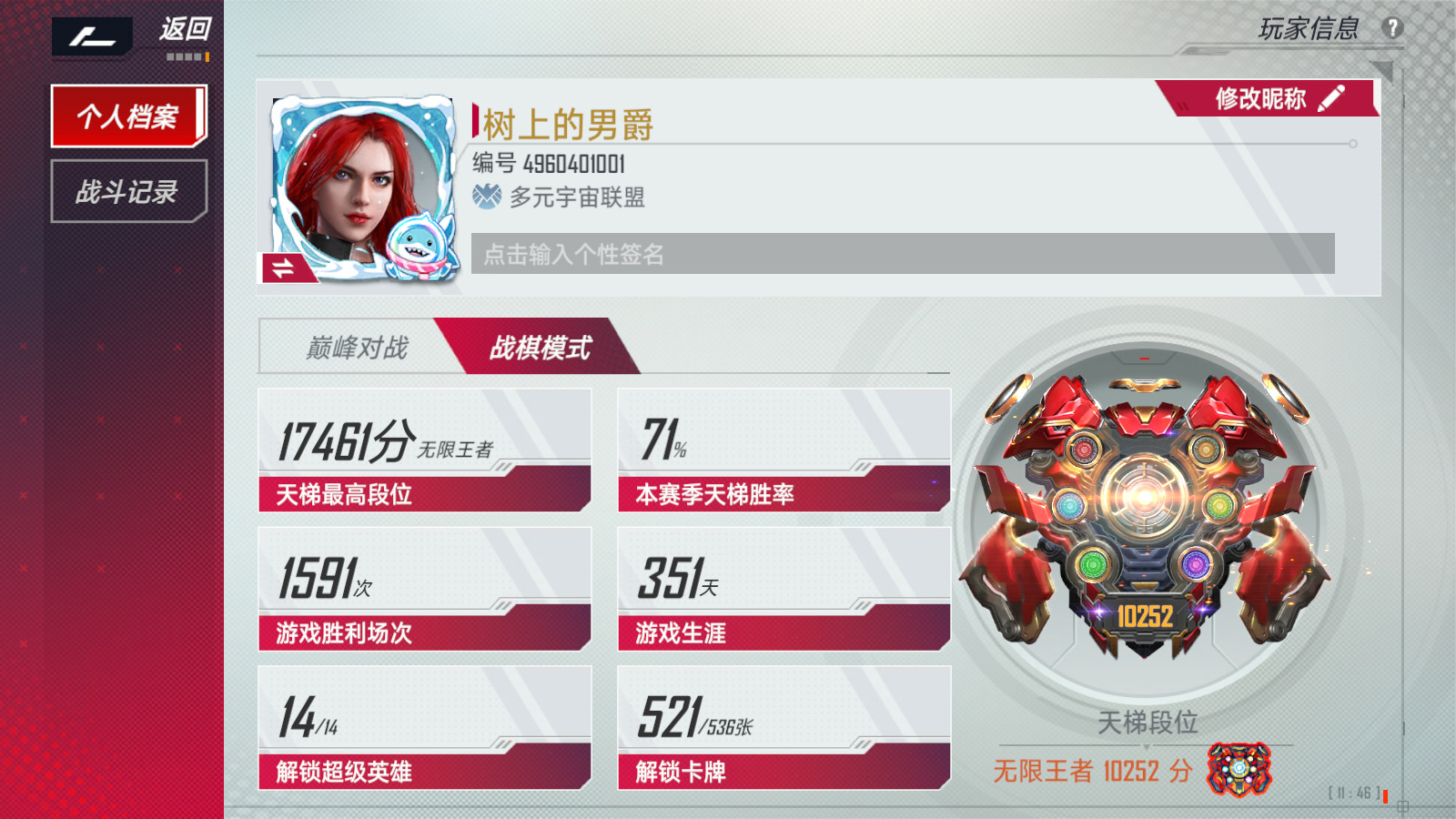 重点只有一个技能,就是永恒泰坦这个技能,两块钱甚至有时自信点零块钱都能拿,拿了这个,你就不用苦恼马卡里不够用了,中期想合几星合几星,后期一些秘闻无限刷血,也有底气能跟他耗到天荒地老,记得有一把打到最后除了我还剩两家秘闻,导致对战成了一把尸体一把玩家,好家伙,打到十六还是十七回合他们血量都还有二三十,后来我游戏都卡死了,掉线重连卡在百分之七十进不去,最终没吃到鸡。