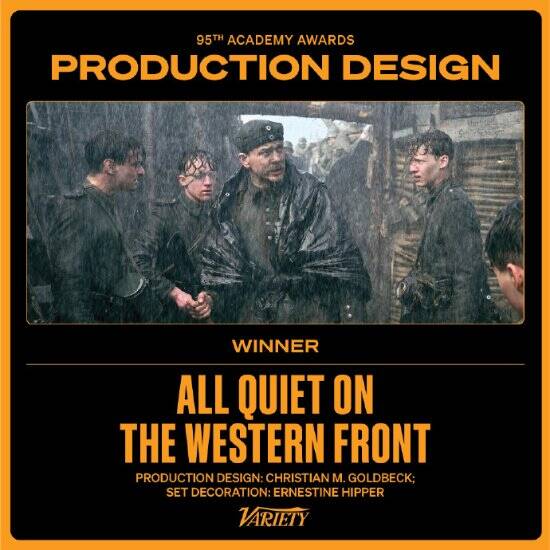 除此之外,《西线无战事》斩获最佳国际影片、最佳艺术指导、最佳原创配乐、最佳摄影共四座小金人,成为本届奥斯卡的第二大赢家。