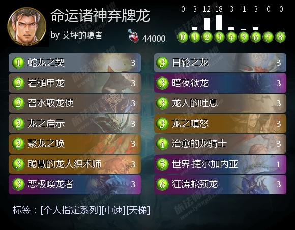 示天龙剑弃牌龙或许是个人指定模式中最火的套牌,但同为弃牌体系的龙族思路,更加久远的命运诸神弃牌龙在强度上也不遑多让,甚至在稳定性上更胜一筹(不足之处则是没有冻雪冰心·菲琳等干扰组件)。