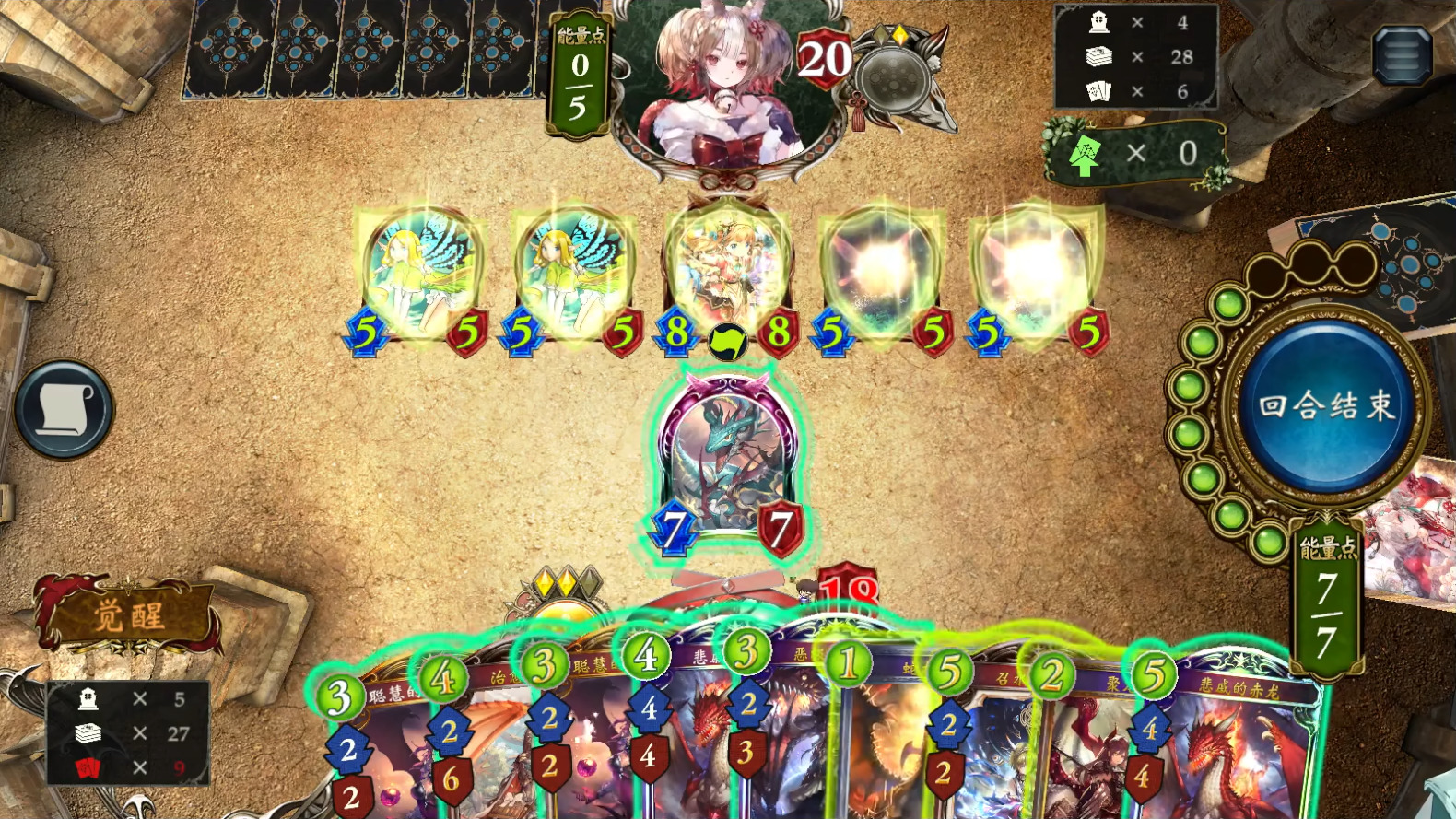 中期尽快使用蛇颈龙,尽量不要为了苟活而拖慢使用它的速度。获得其主战者效果后,优先使用弃牌组件,尽量不使用启示、聚龙、嗔怒,除非无事可做或需要用嗔怒解场。同理,慎用世界。