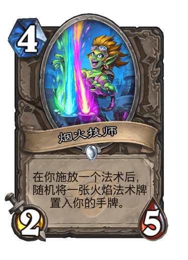 在你施放一个法术后,随机将一张火焰法术牌置入你的手牌。