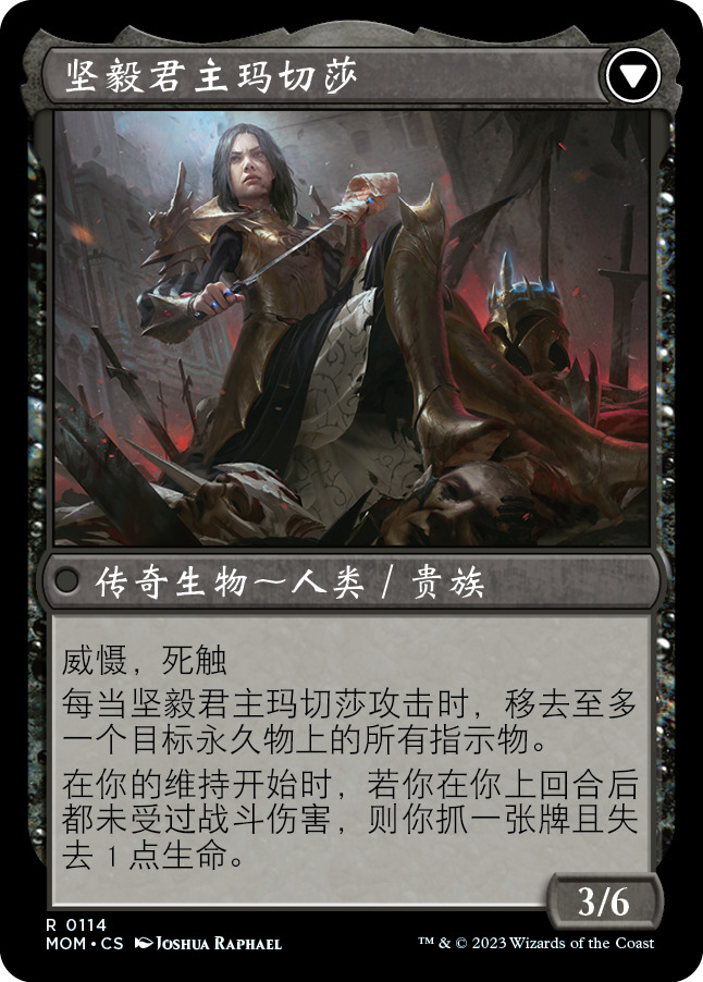 对战役造成的伤害,会移去战役上等量的布防指示物。当从围攻战役上移去最后一个布防指示物时,该战役便失守并触发一个触发式异能。于此异能结算时,战役的操控者会将之放逐,然后从放逐区施放其背面,且不需支付其法术力费用~背面也不会有法术力费用,所以这部分很容易理解。而战役背面的东西就多种多样,不一而足;其中大部分是永久物,例如坚毅君主玛切莎(女王万岁),但其中也有一些是法术。