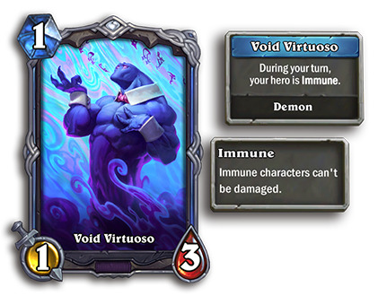 在英雄具有免疫(或圣盾)时消耗生命值或护甲值(作为费用)仍将消耗生命值,且不再视为“受到伤害”。