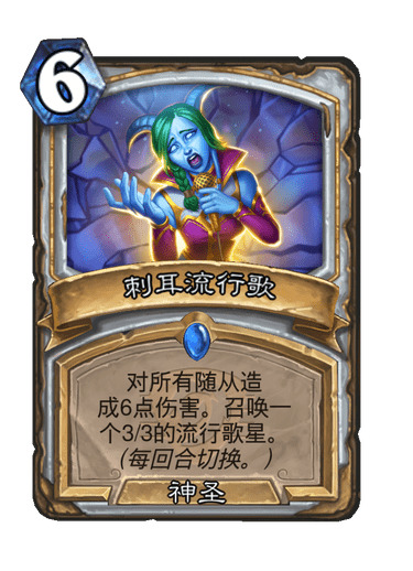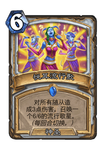 对所有随从造成3点伤害。召唤一个6/6的流行歌星。