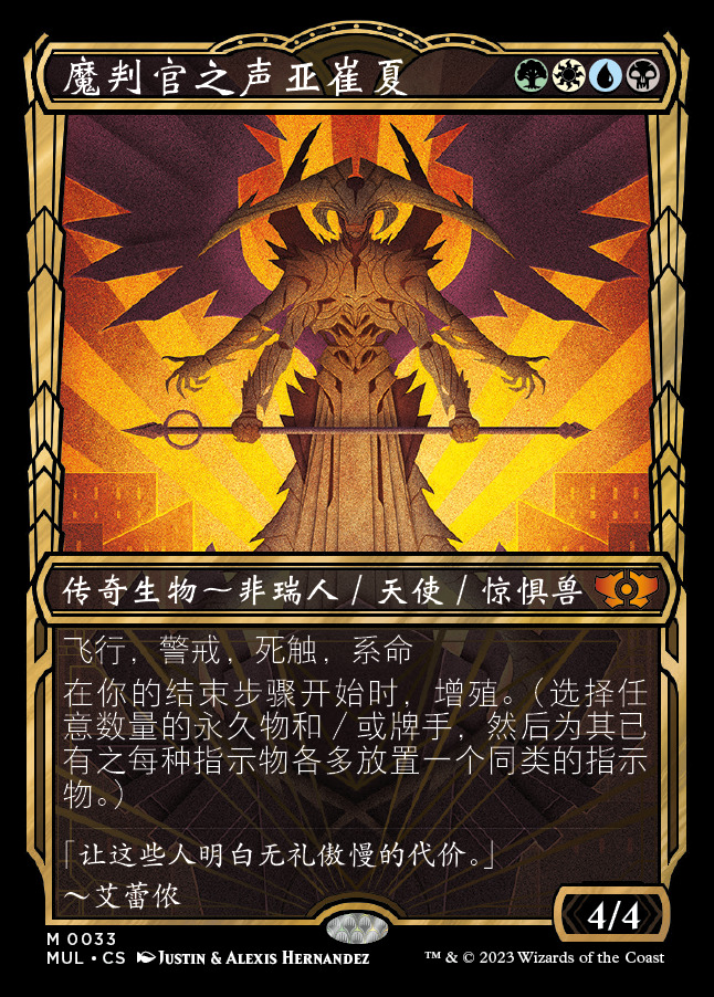 此外,邪军压境中出现的五位魔判官均有限量编号版本。和多重宇宙传奇牌不同的是,此类魔判官牌配有限量编号版特有的插画:
