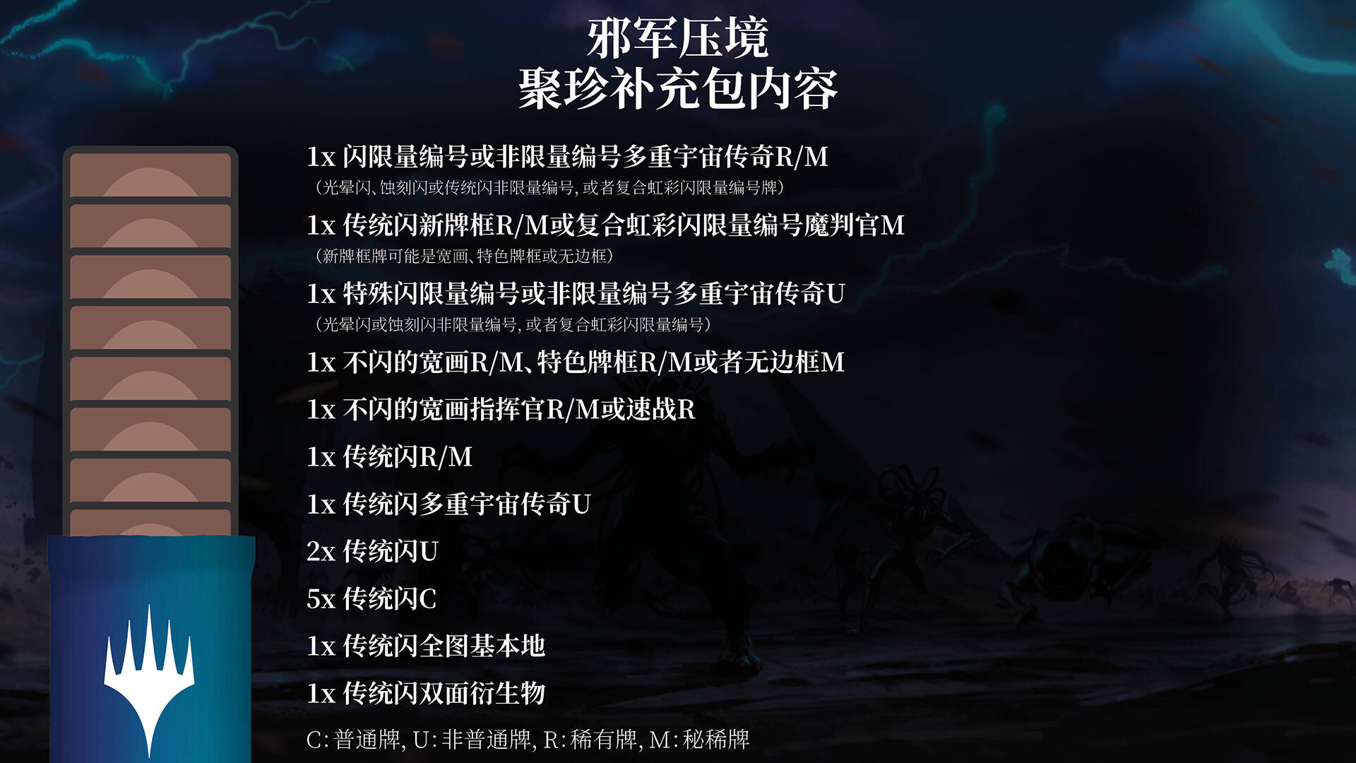 - 8张新加入万智牌的不闪稀有牌(为邪军压境指挥官系列的该套牌所特有)