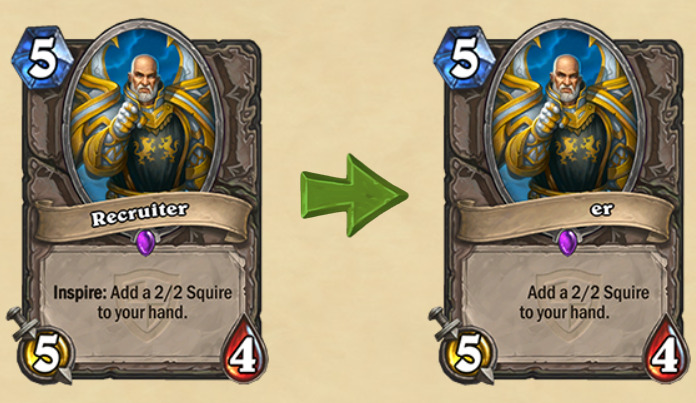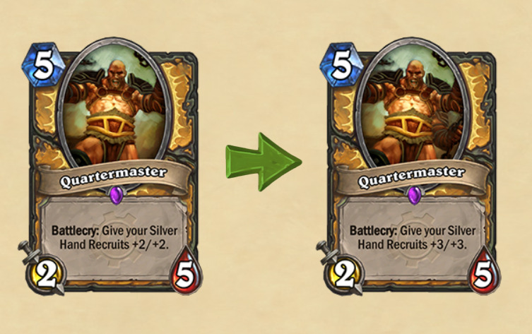- 旧版:战吼:使你的白银之手新兵获得+2/+2。台词: