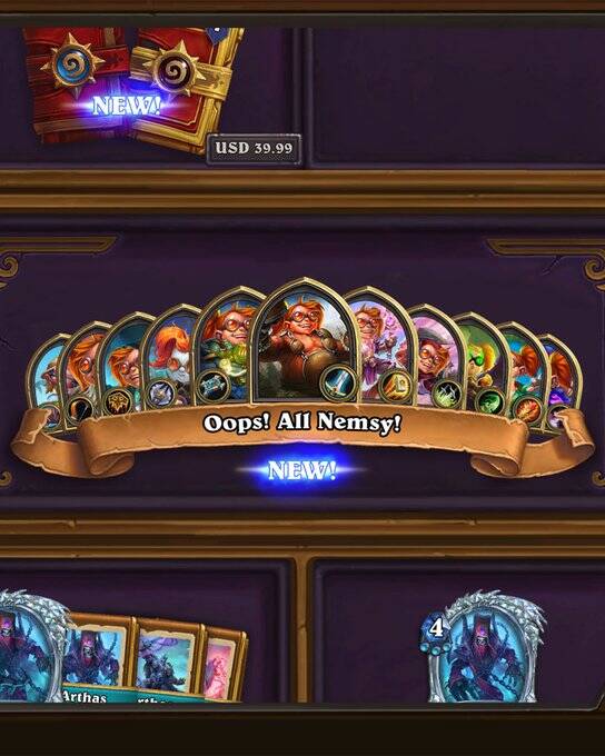 【炉石官推今天发的愚人节贴图里也是满满的奈姆希,而且奈姆希的战士皮肤还是把头套在石拳食人魔上】