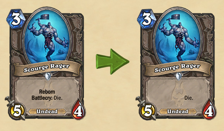 虽然关键字能够带来许多益处,但太多的关键字也会让游戏过于复杂,有时也会对游戏体验造成影响。“激怒”关键字就是一个很好的例子。为了让卡牌更加统一且更容易了解,我们再次决定要将一些关键字移除。我们会举几个例子,让大家了解这些改动在游戏中会有什麽样的效果。